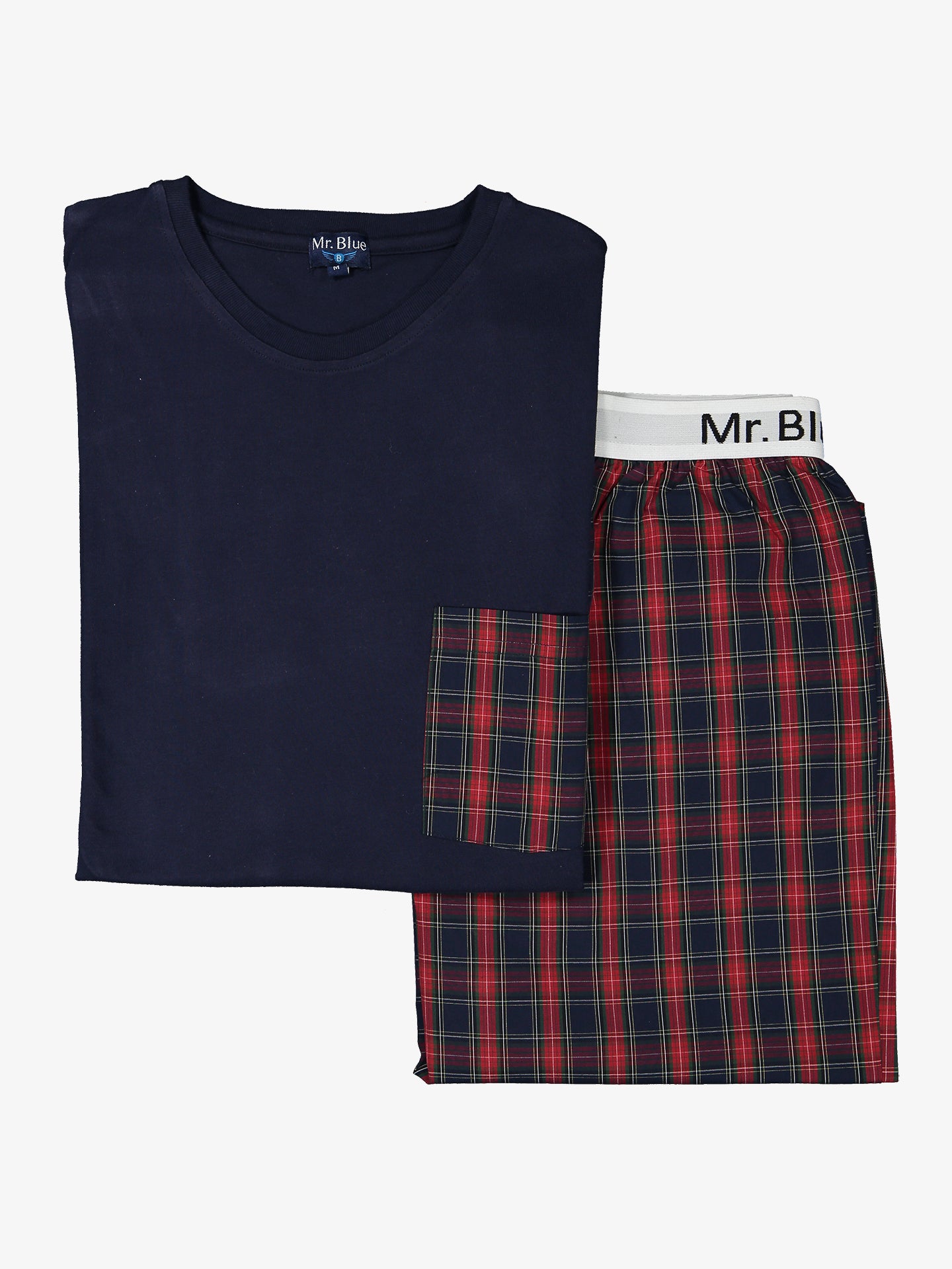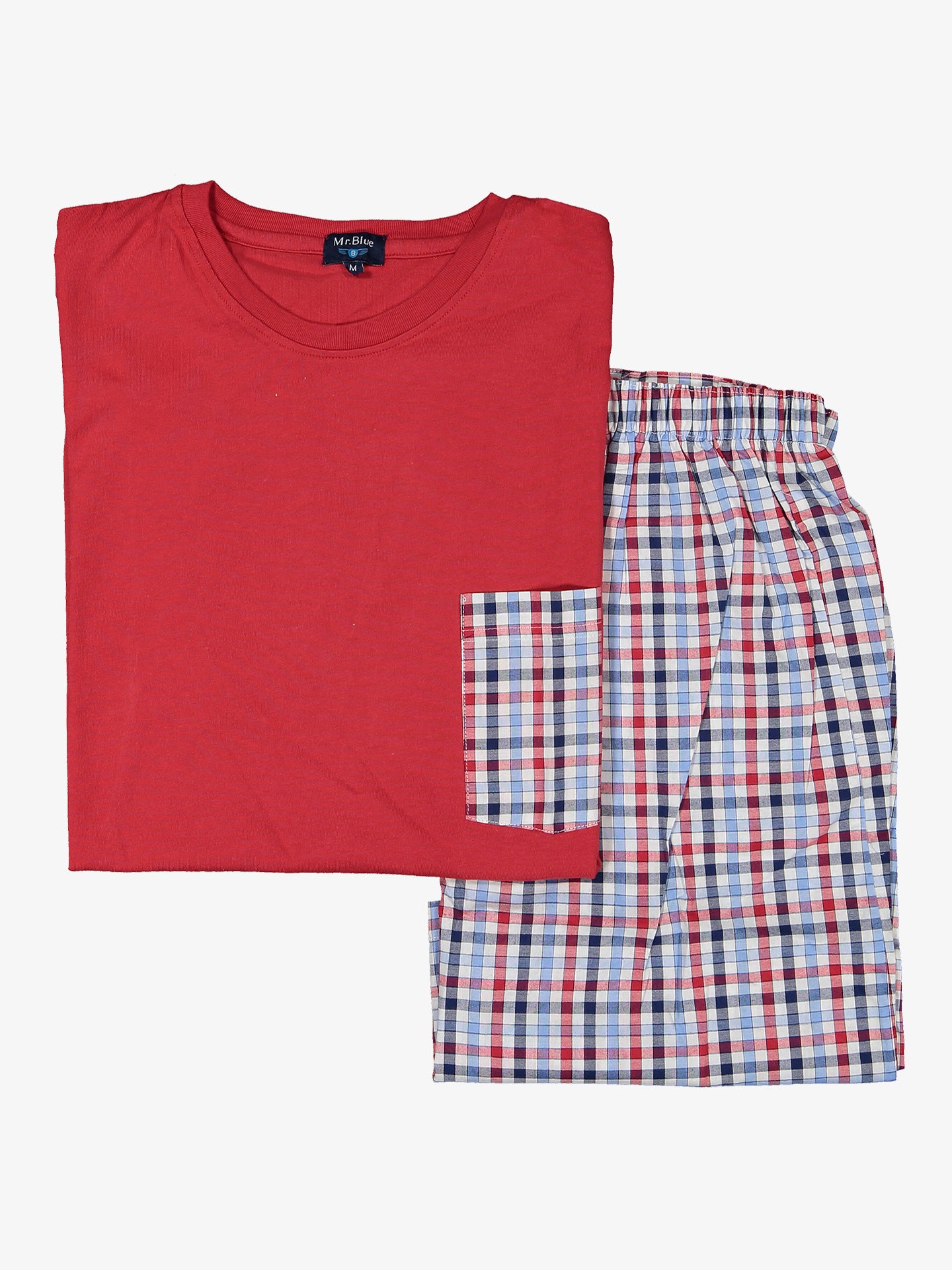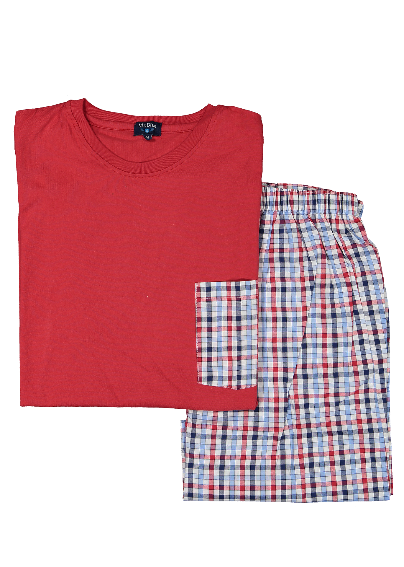 Pijama desportivo quadrados azul e vermelho