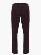 Calças algodão bombazina bordeaux. Corte regular. carcela com fecho de correr oculto, 2 bolsos laterais, 2 bolsos de ilhós abotoado na parte posterior e presilhas para o cinto. Quente e muito confortável, são a escolha certa para os dias de Inverno.