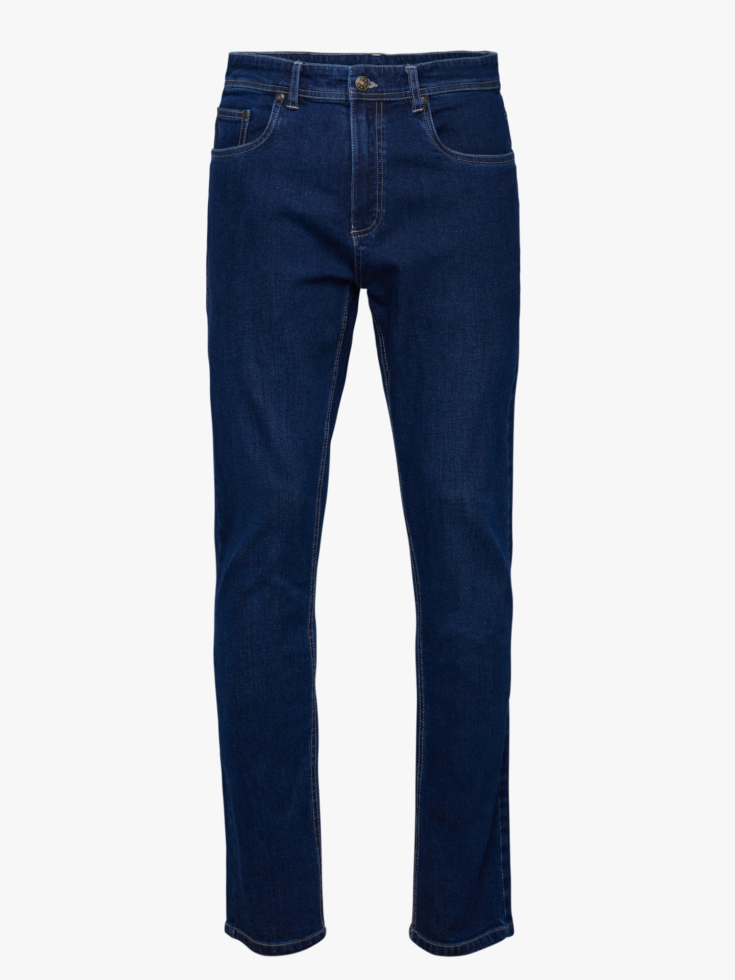 Calças de ganga stone wash azul escuro cintura subida