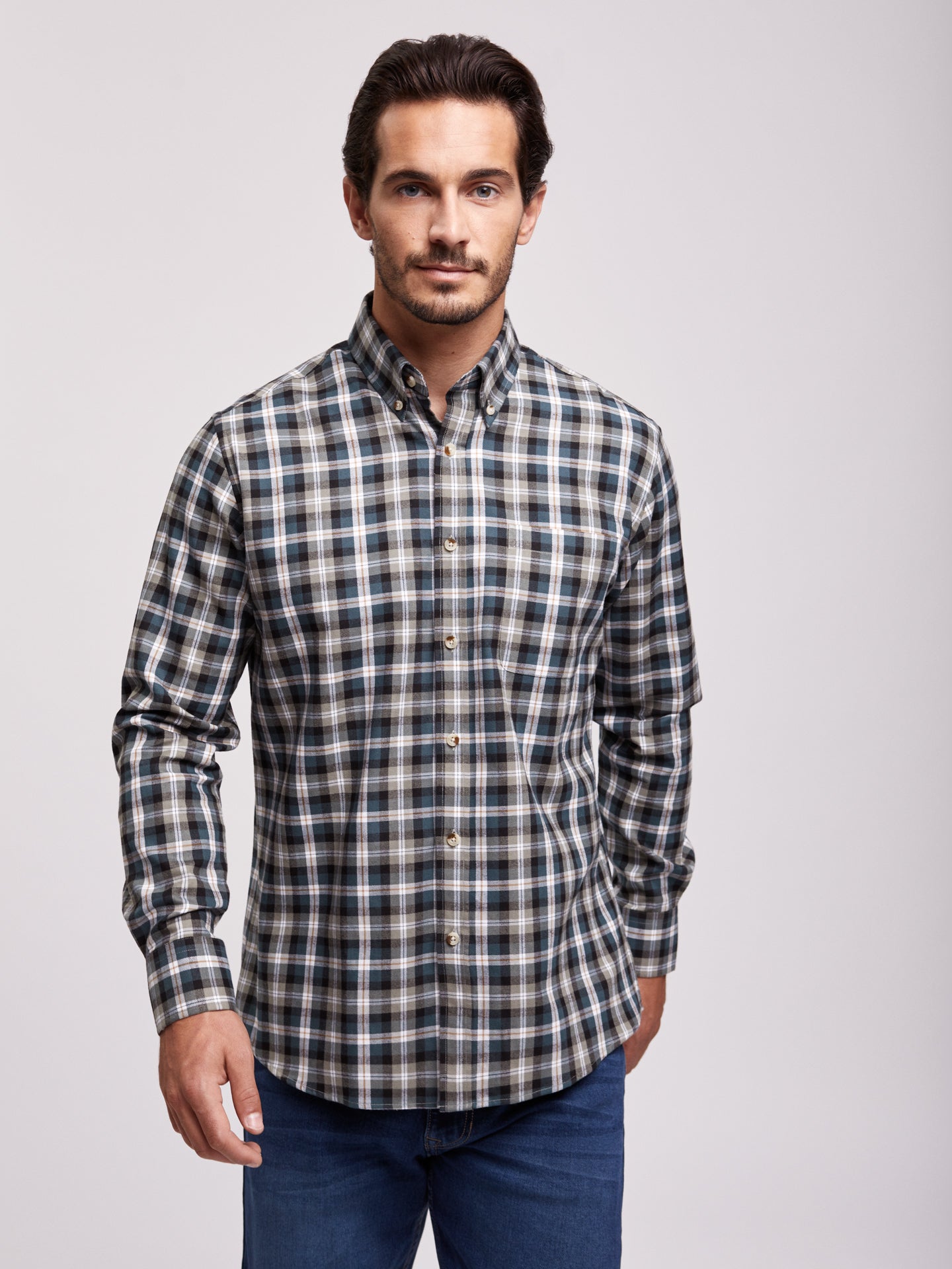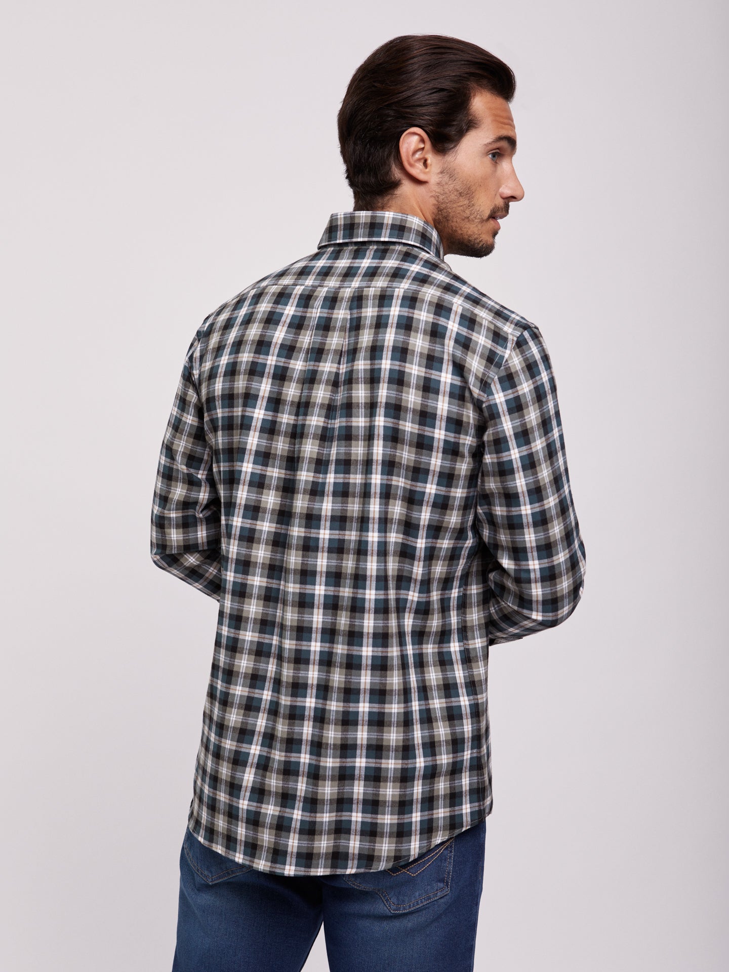 Camisa Regular Fit Verde Manga CompridaManga Comprida Quadrados Com Bolso