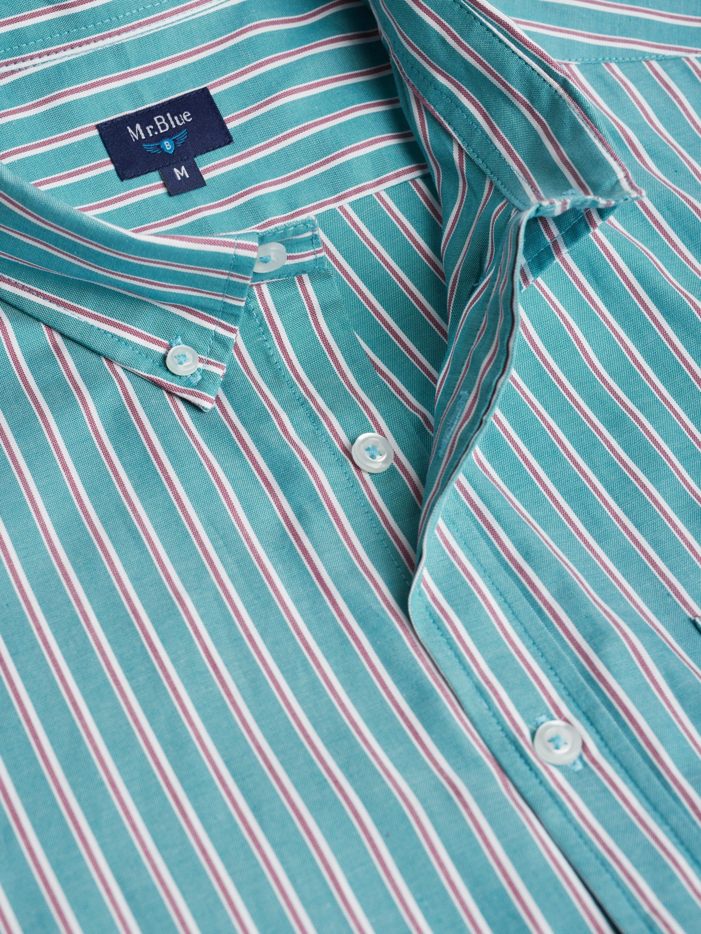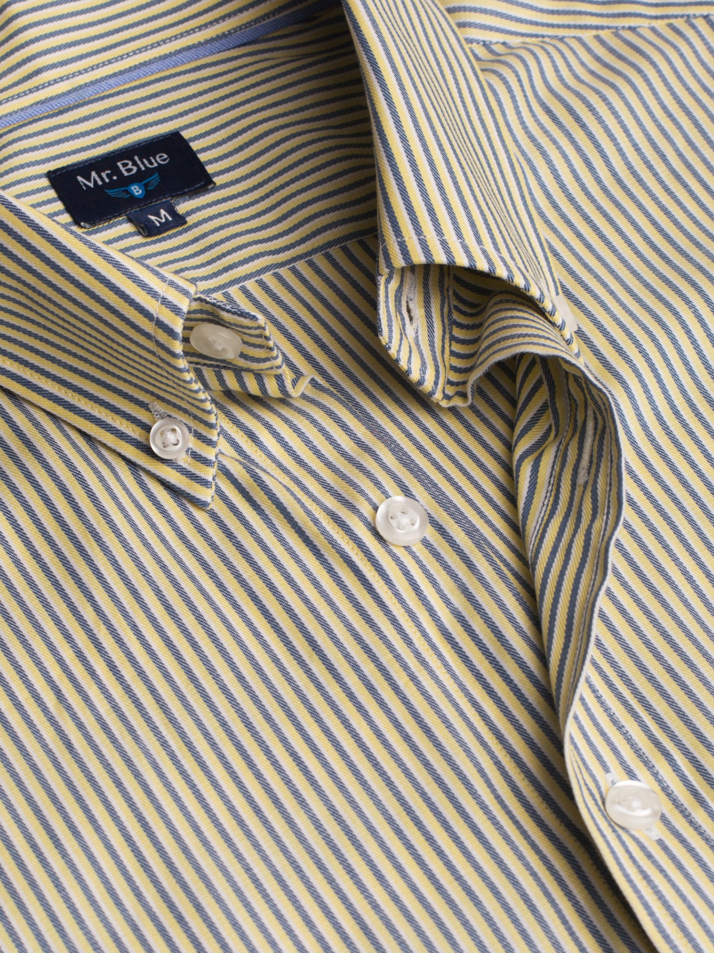 Camisa algodão às riscas azul claro e amarelo com bolso