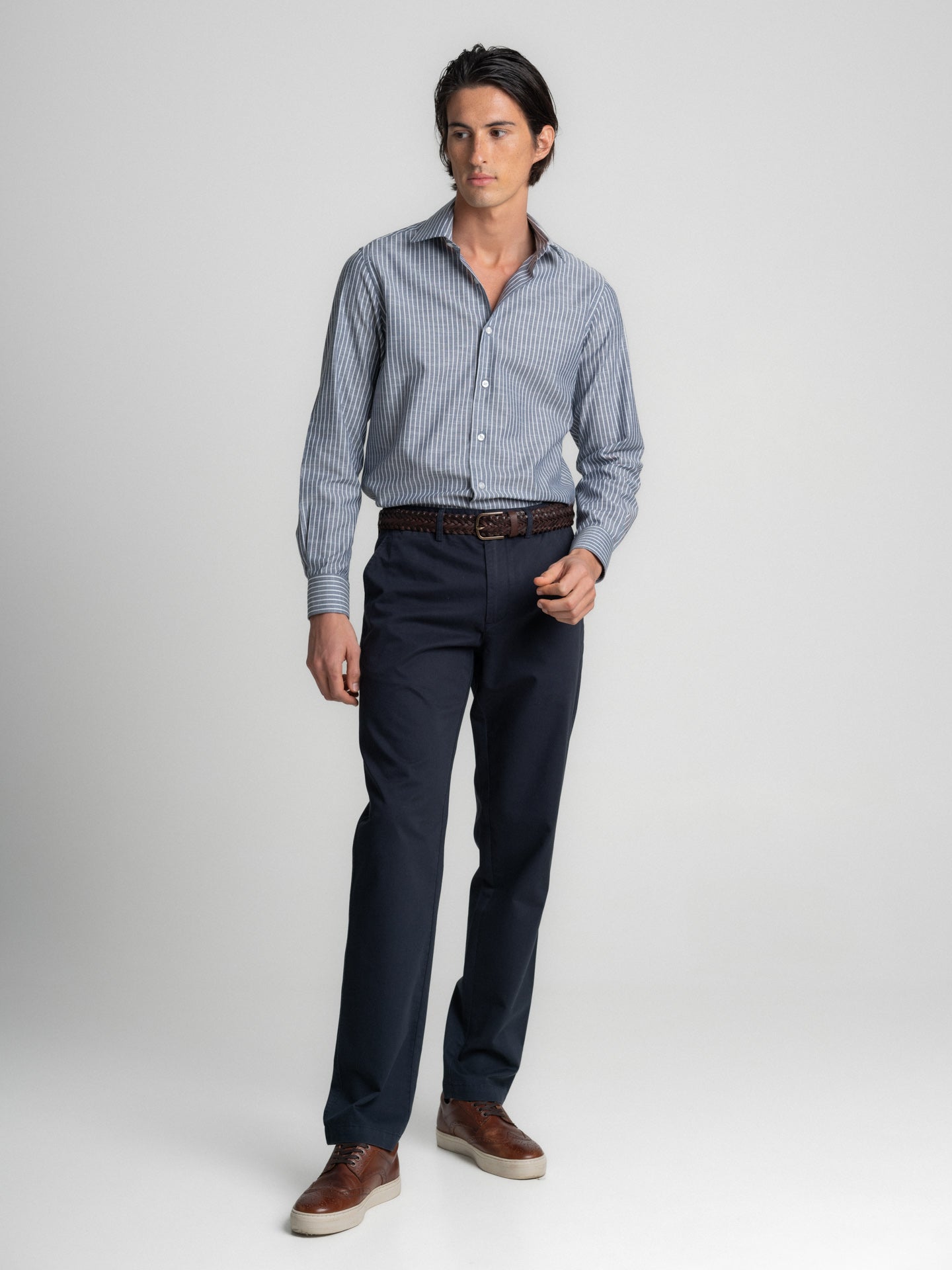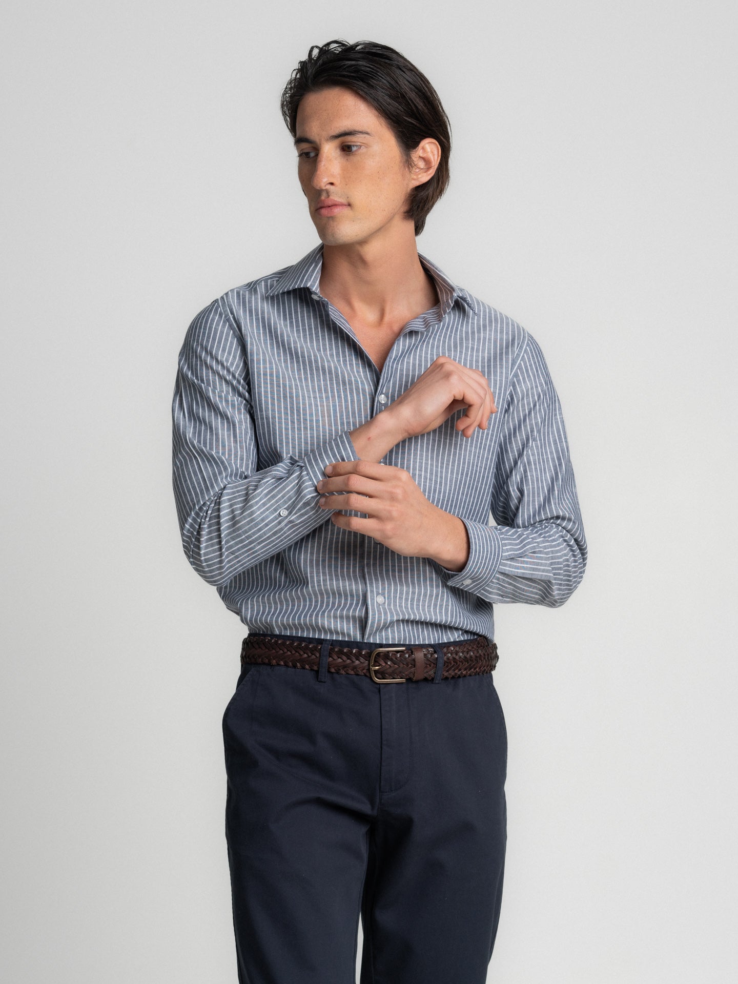 Camisa Tailored Fit Cinzenta Manga Comprida