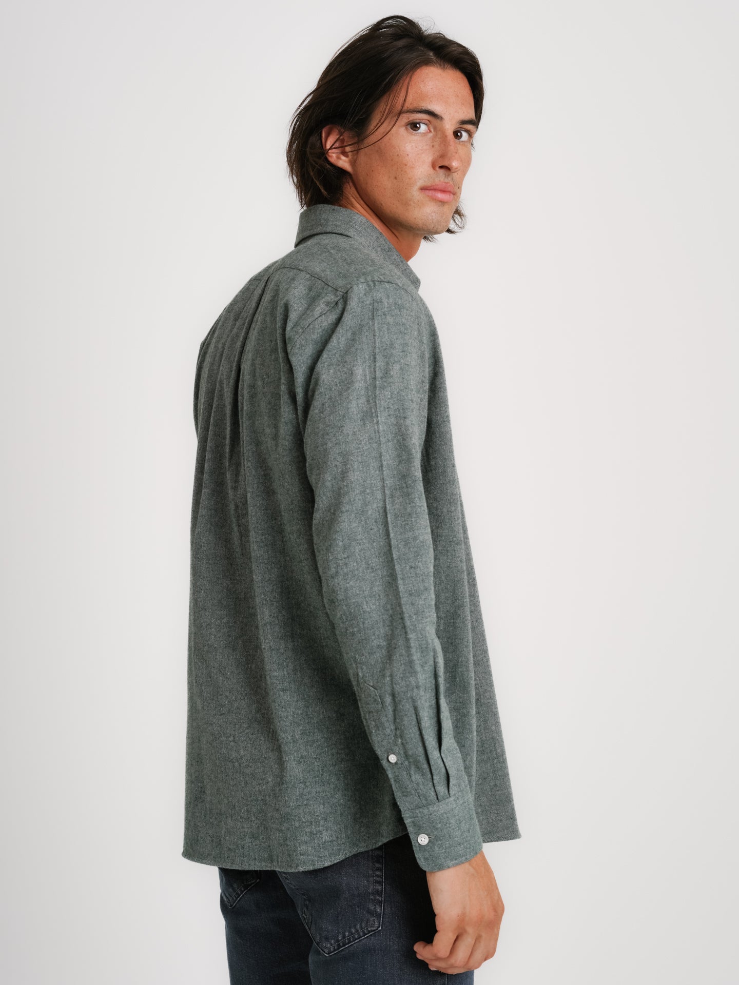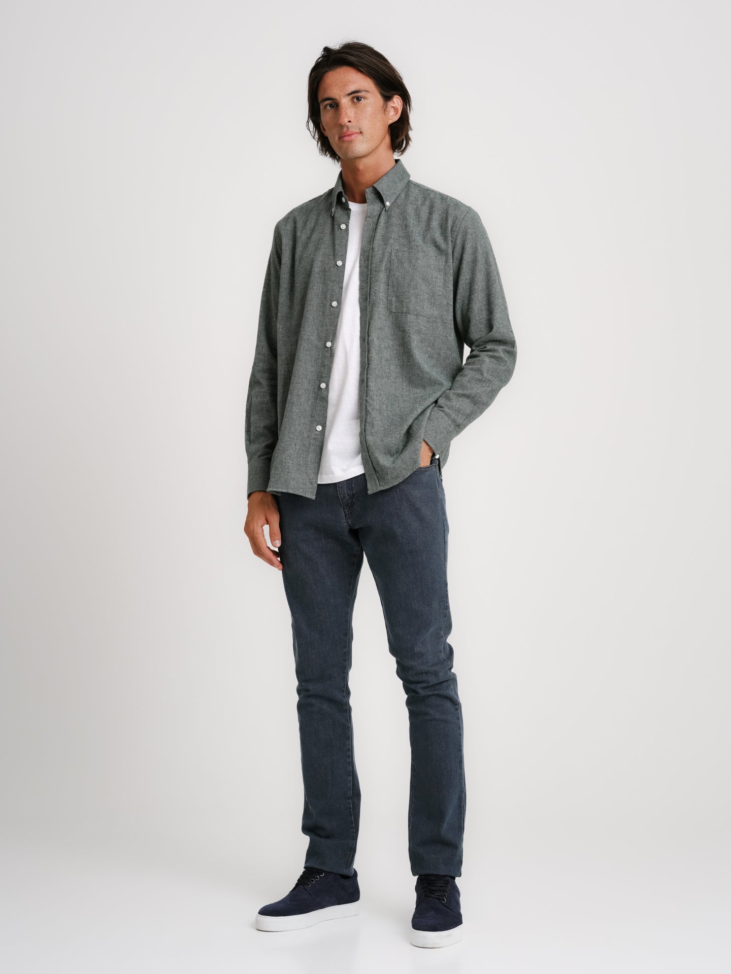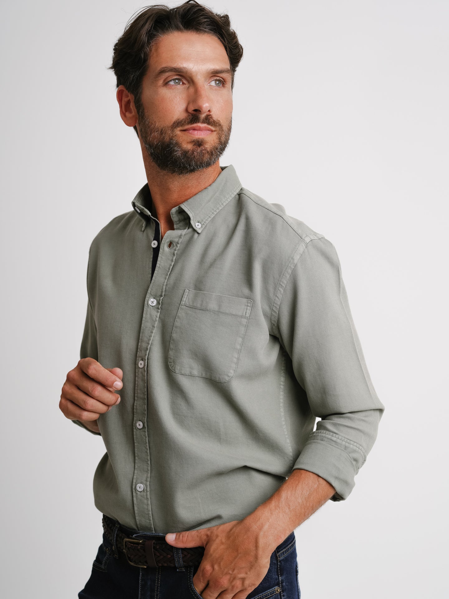Camisa algodão verde seco com bolso