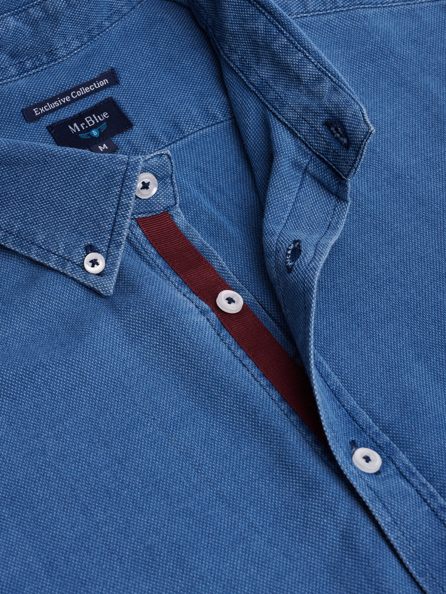 Camisa Slim Fit Piquet Azul