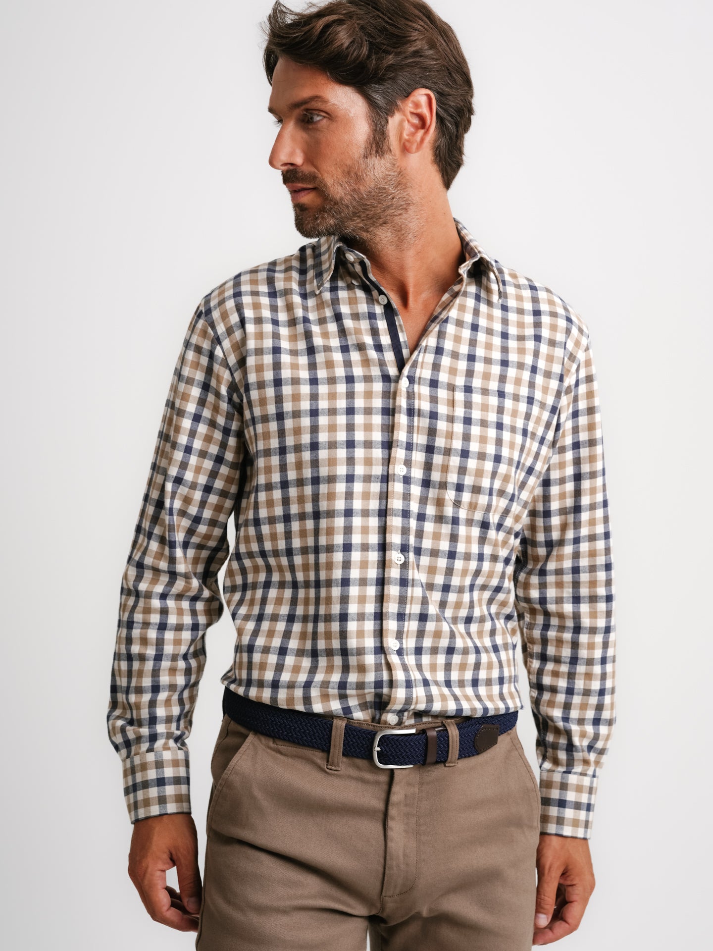 Camisa Regular Fit Flanela Bege