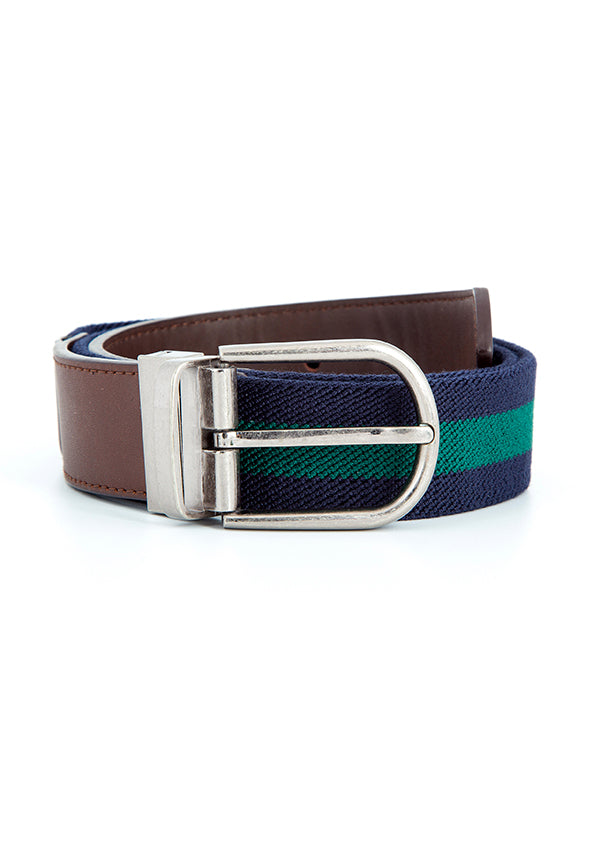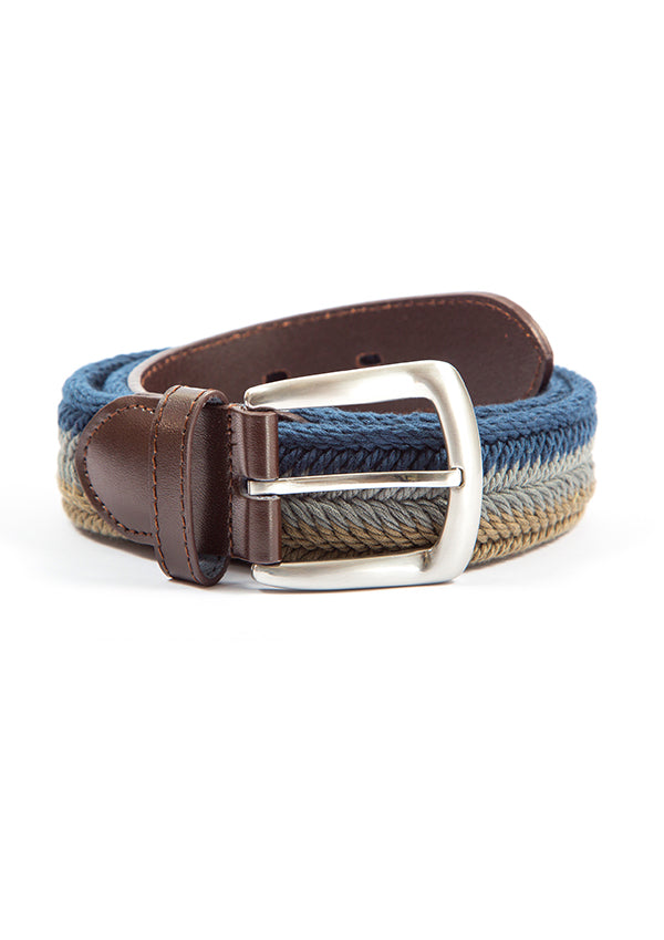 Cinto riscas grossas castanho e azul claro