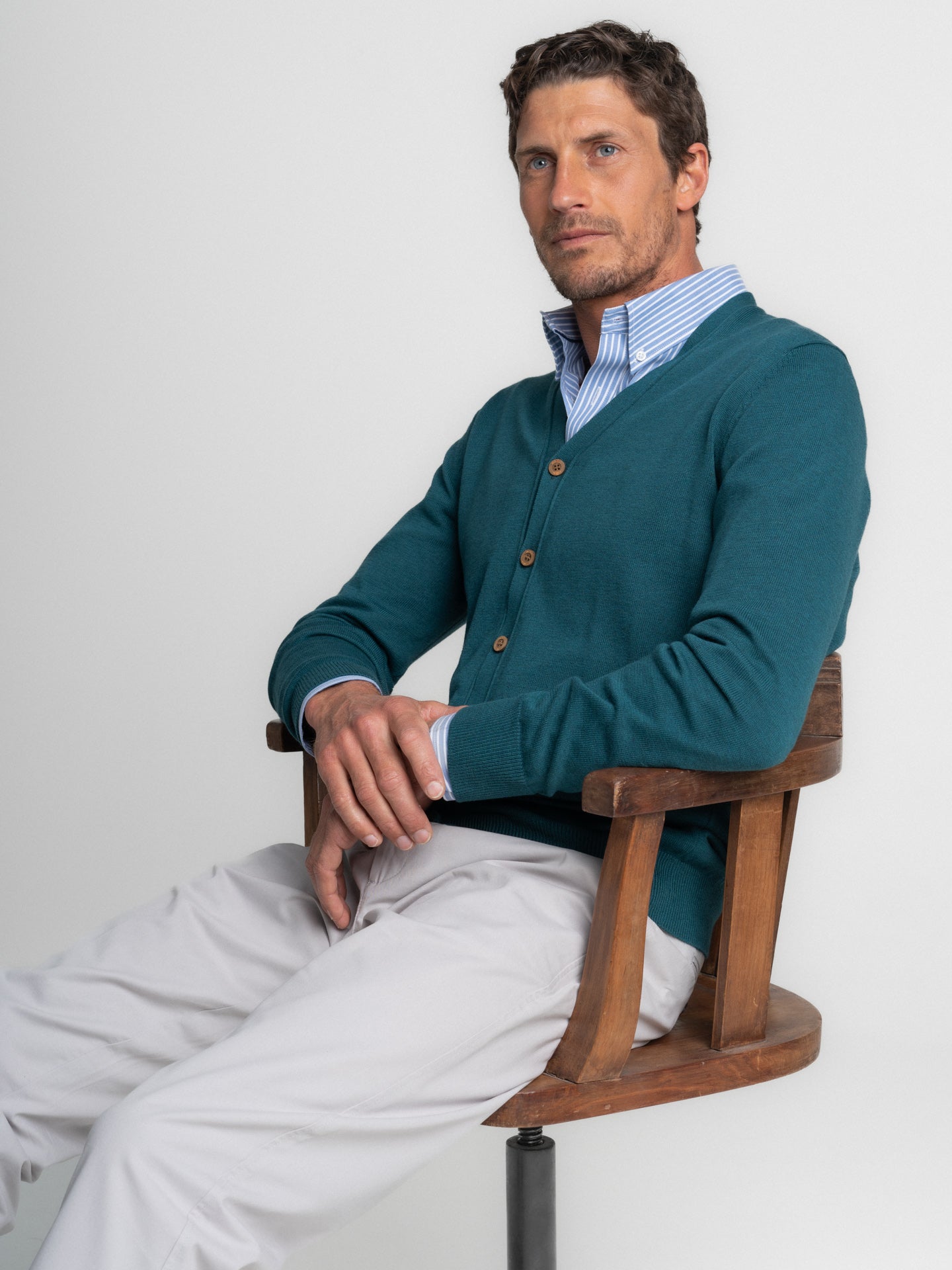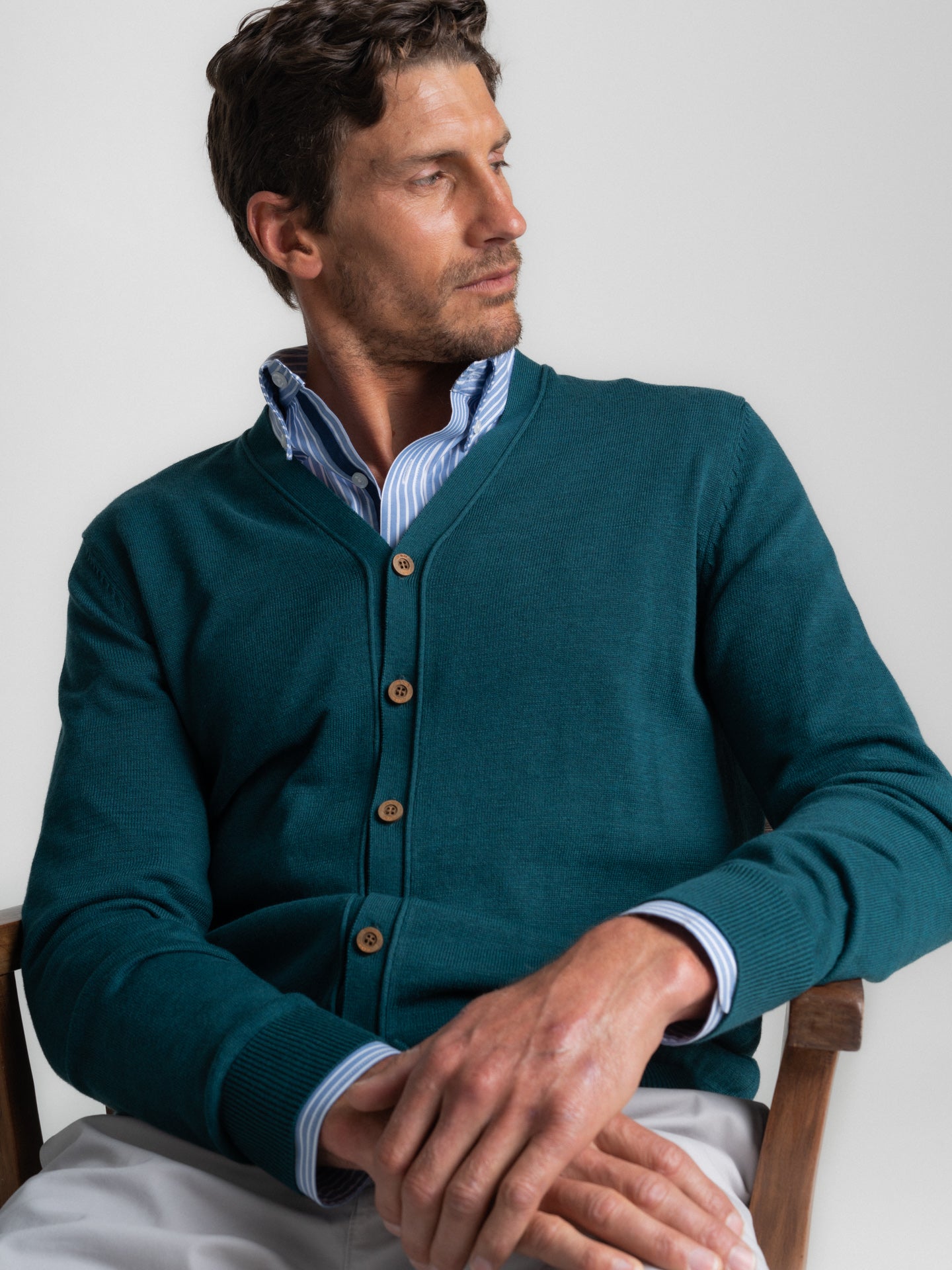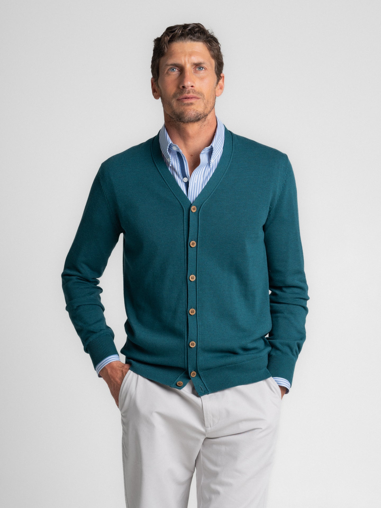 Cardigan Lã Merino Fino Cinzento