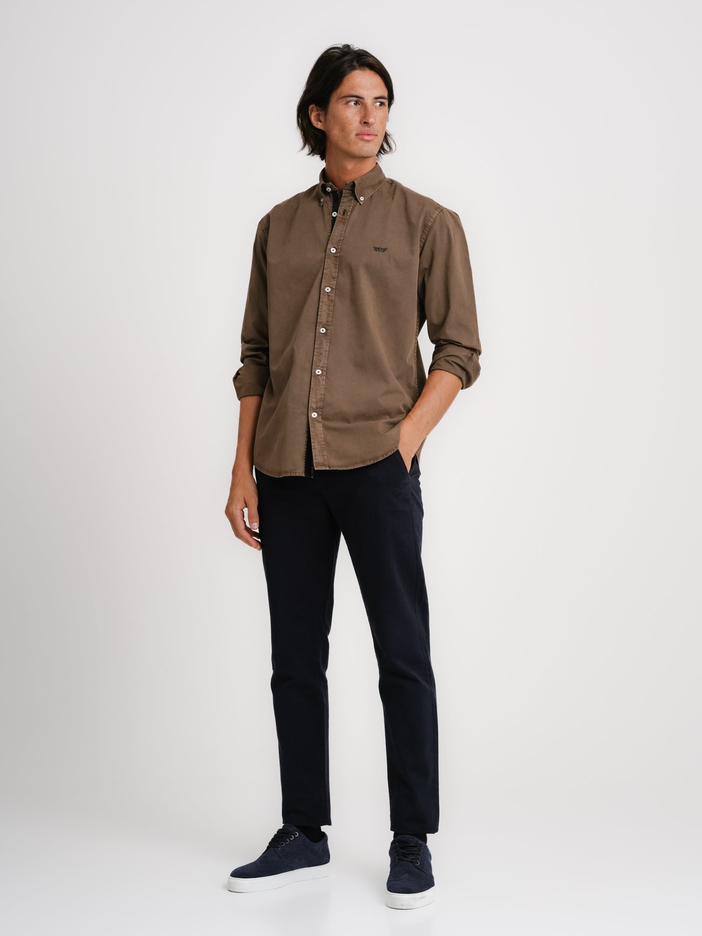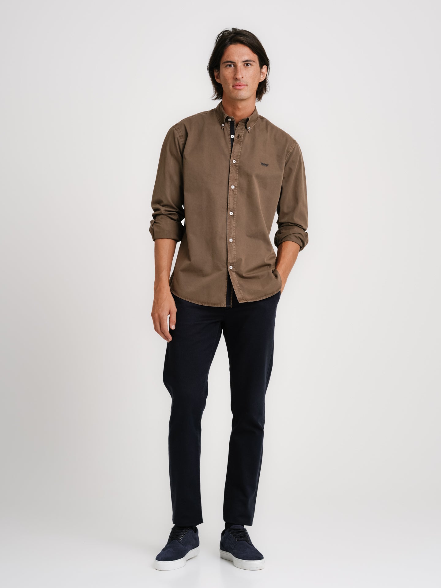 Camisa Regular Fit Popelina Castanho