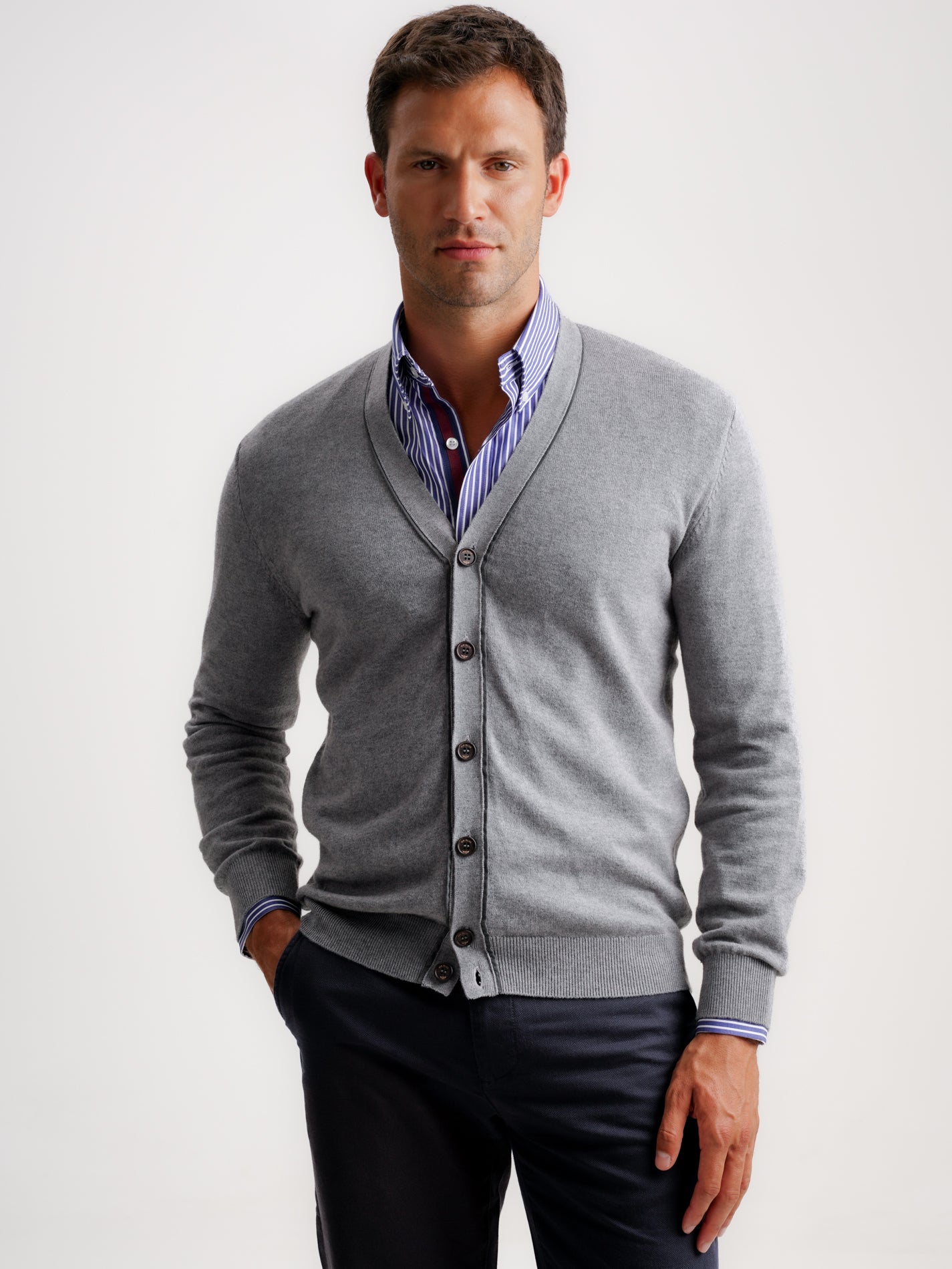 Cardigan Lã Merino Fino Cinzento