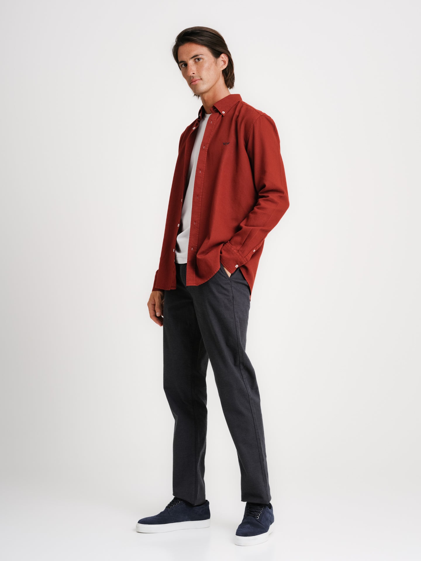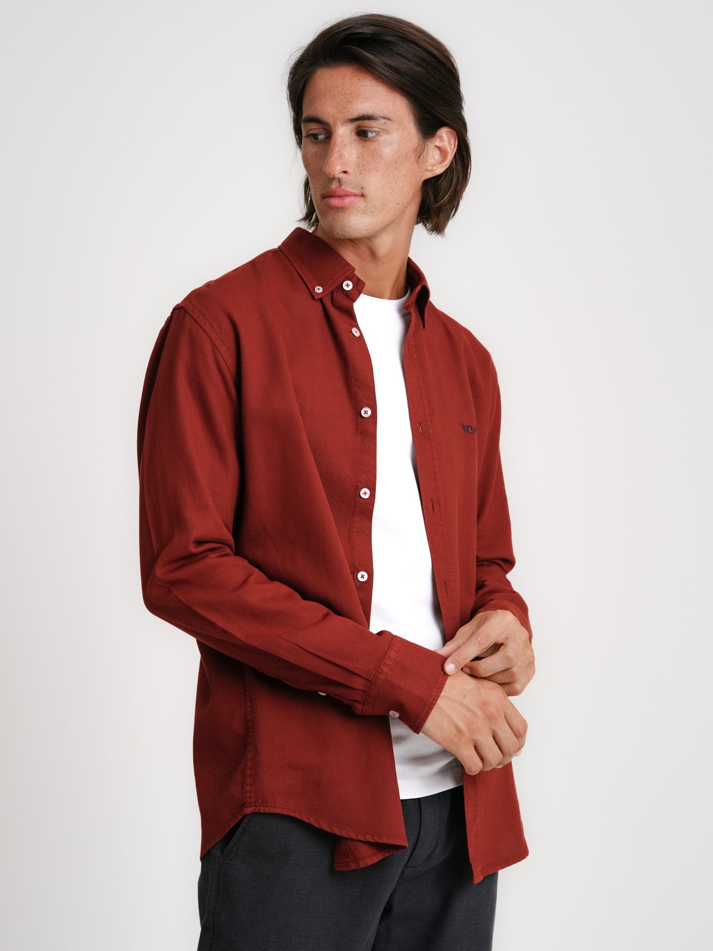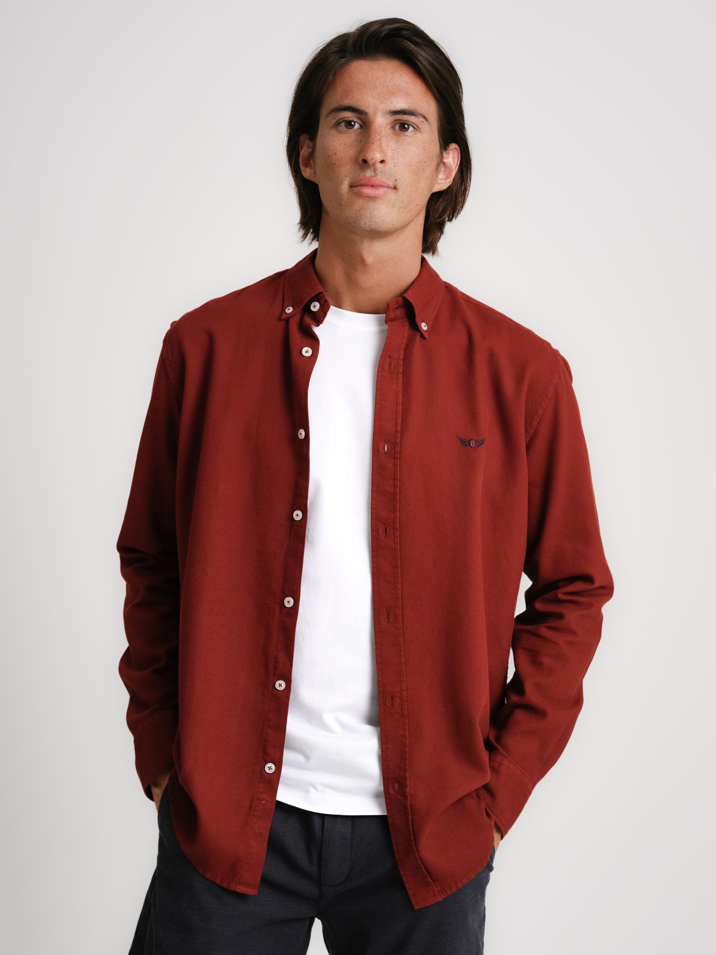 Camisa Regular Fit Oxford Bordeaux