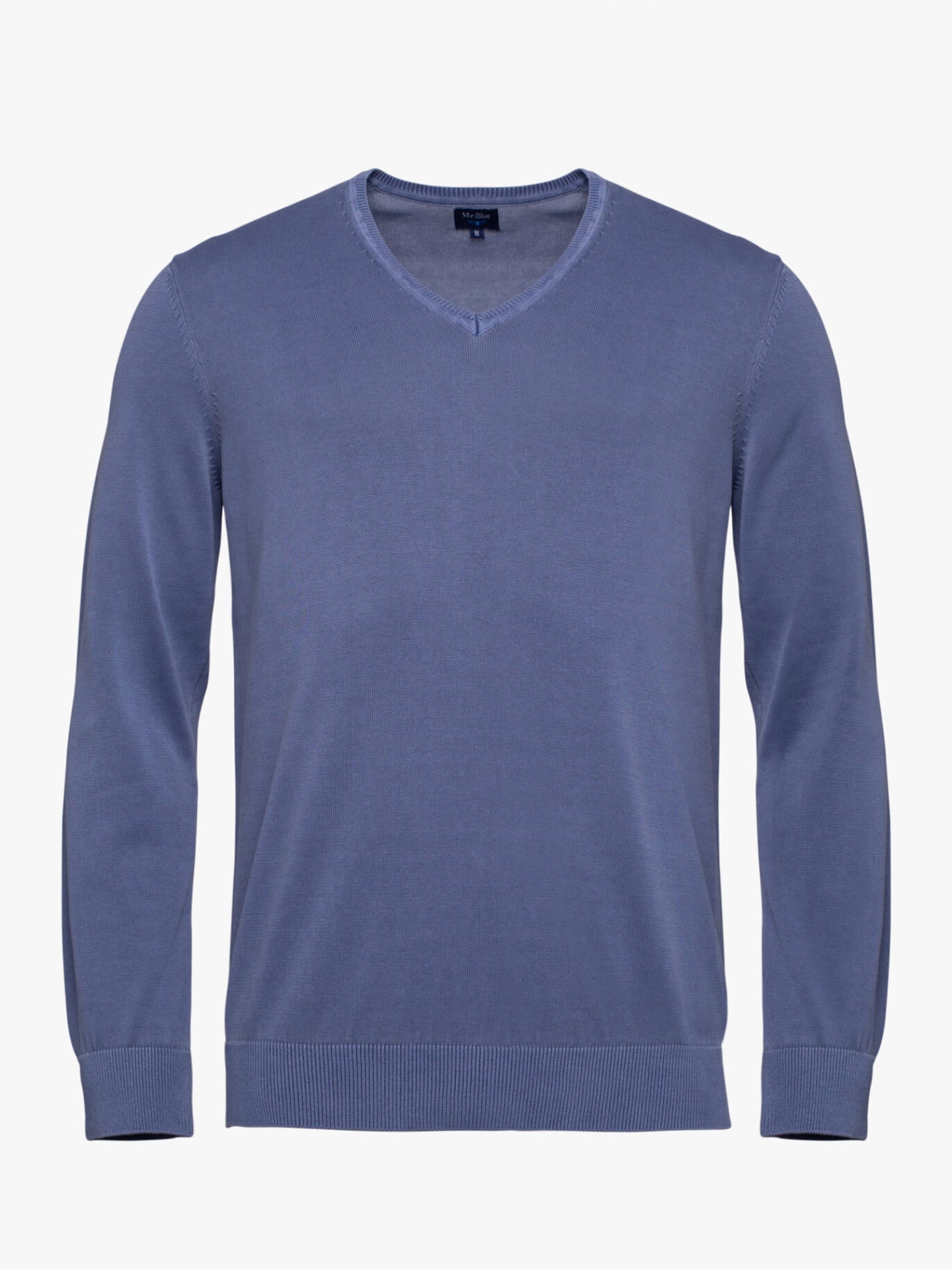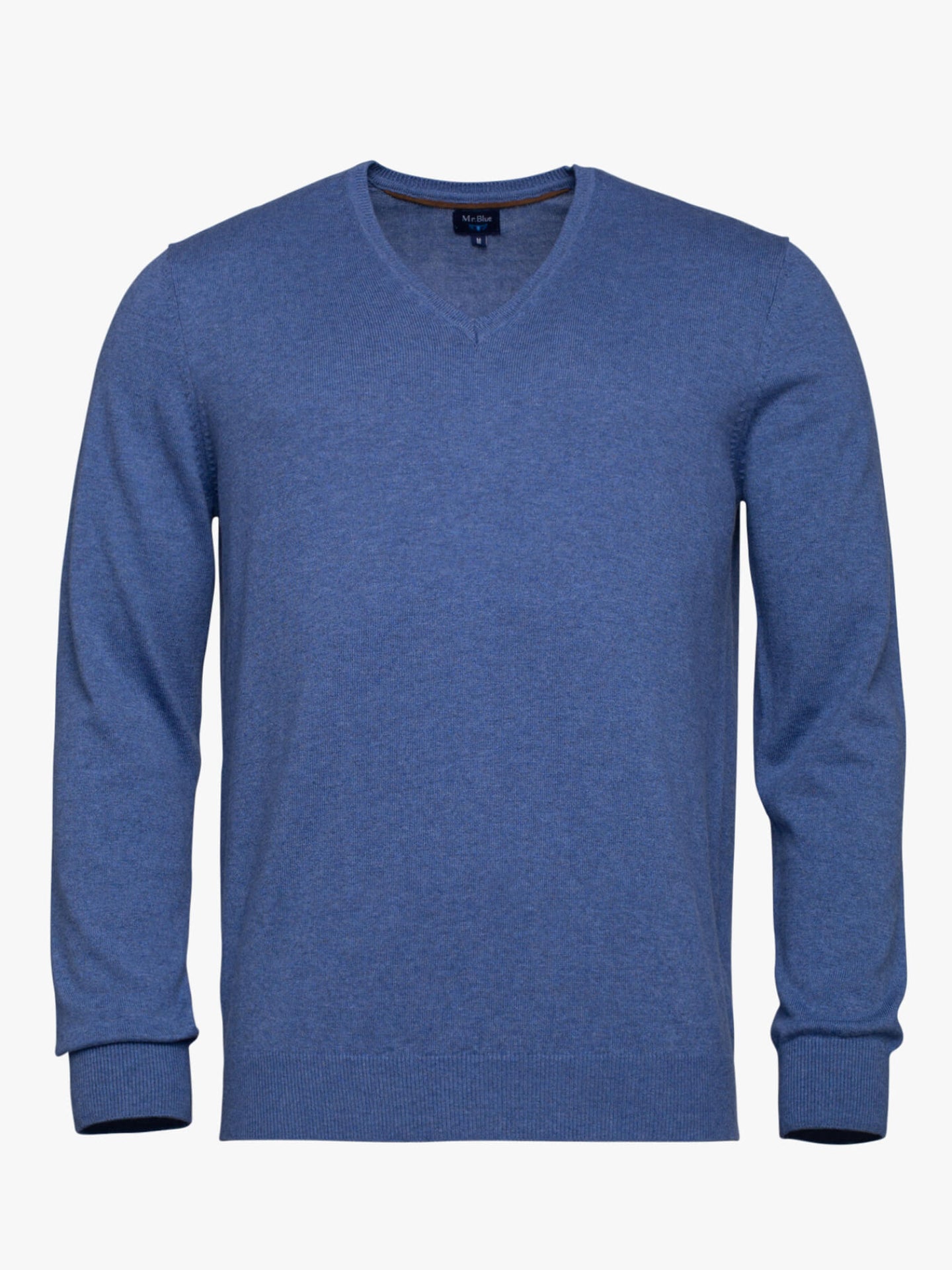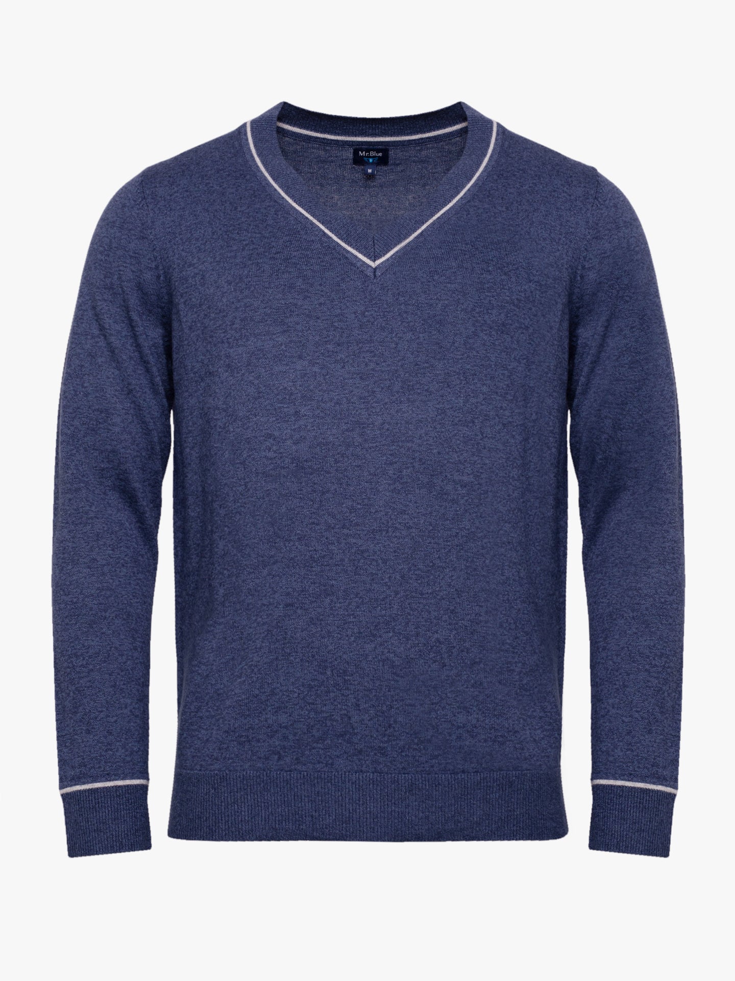Camisola algodão e caxemira azul com decote em V