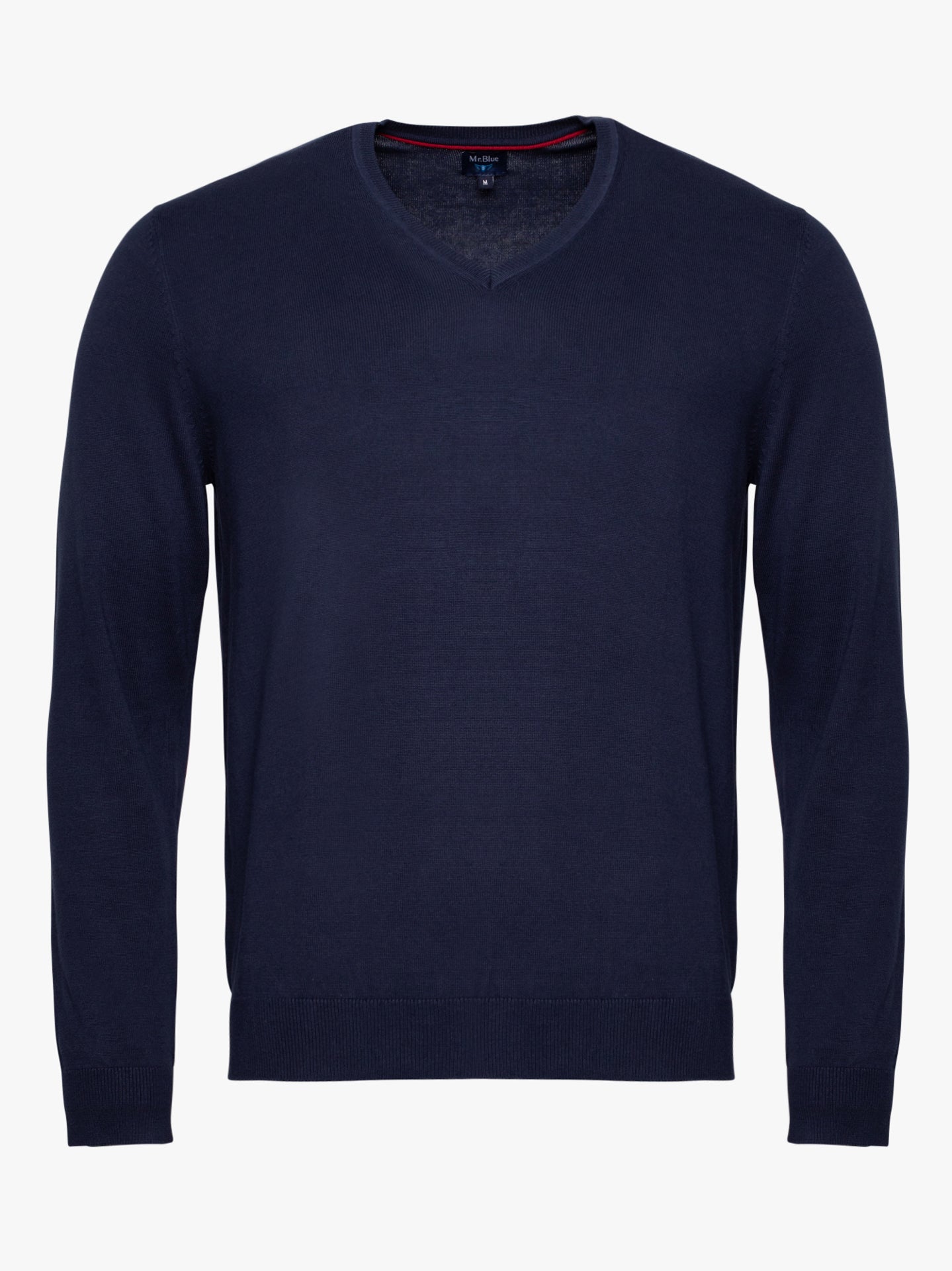 Camisola azul escuro em algodão e caxemira decote em V