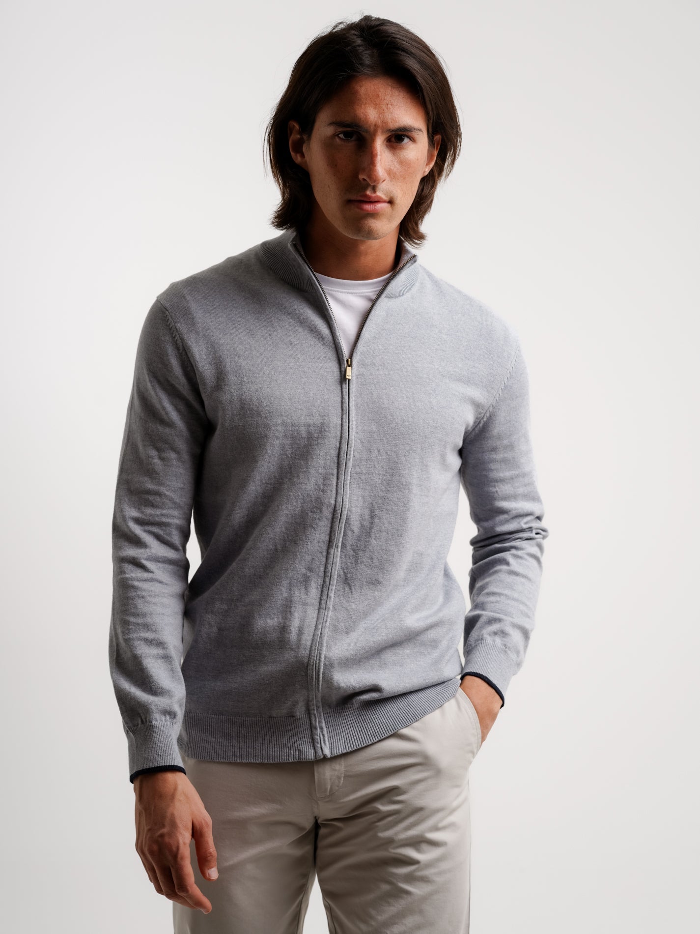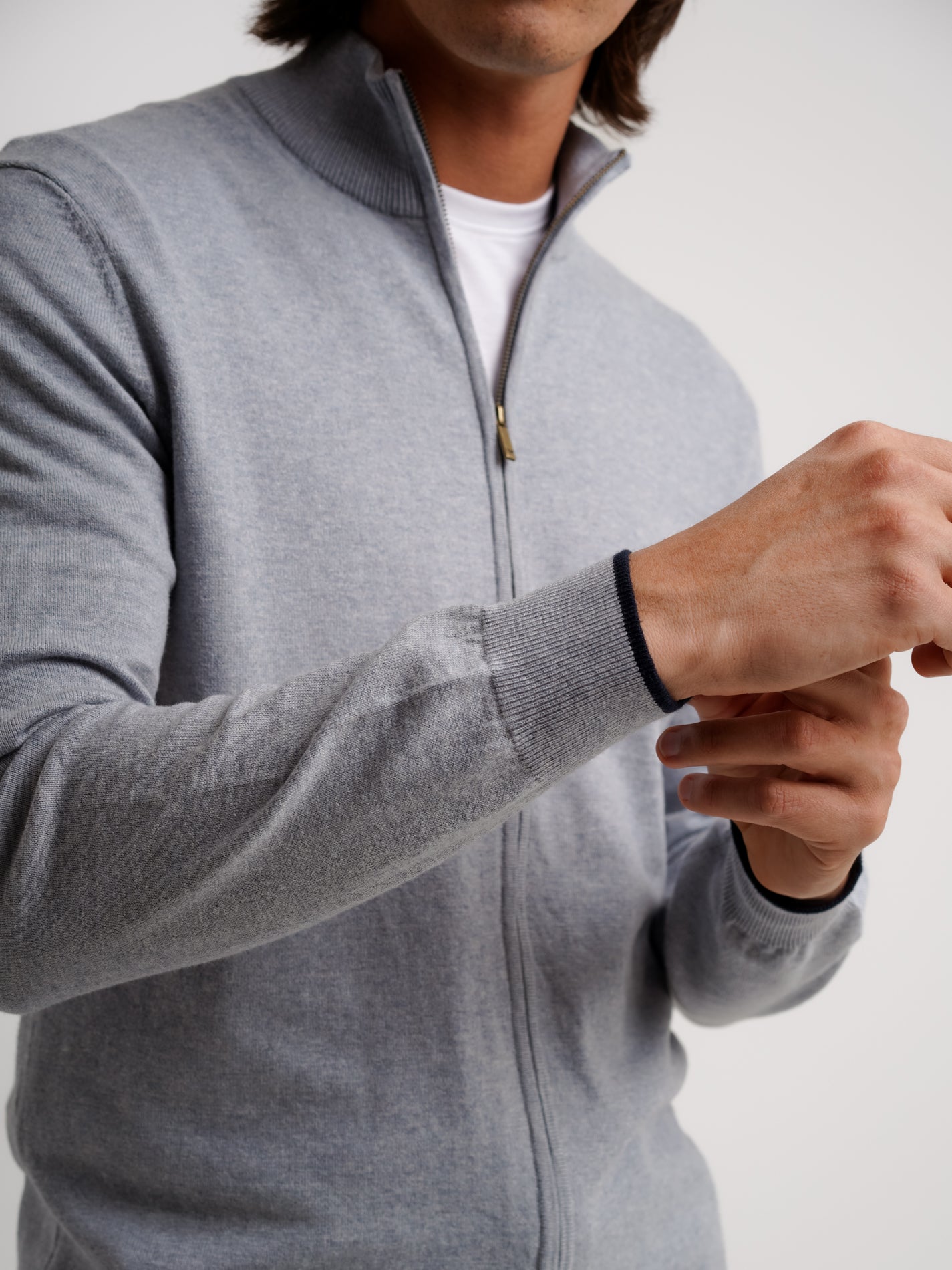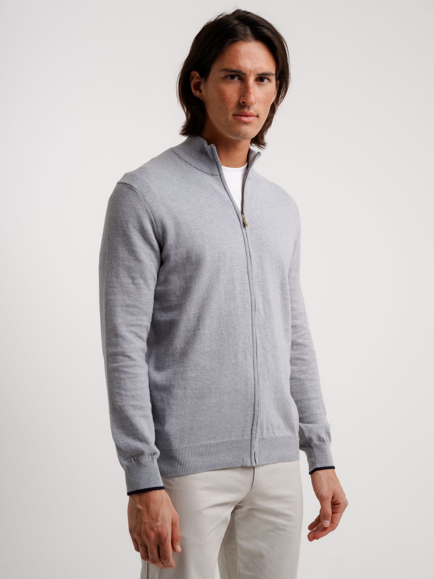 Cardigan Lã Merino Fino Cinzento