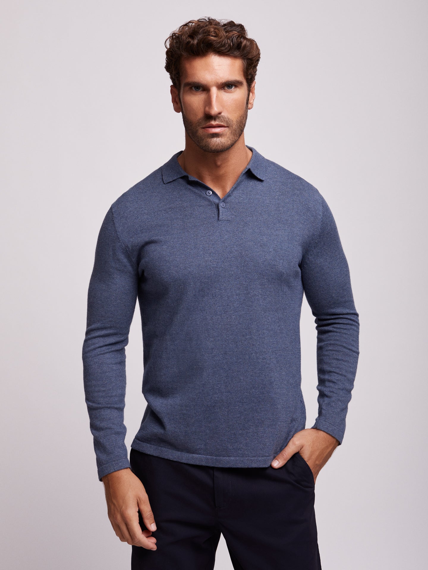 Camisola algodão e caxemira gola com fecho liso azul
