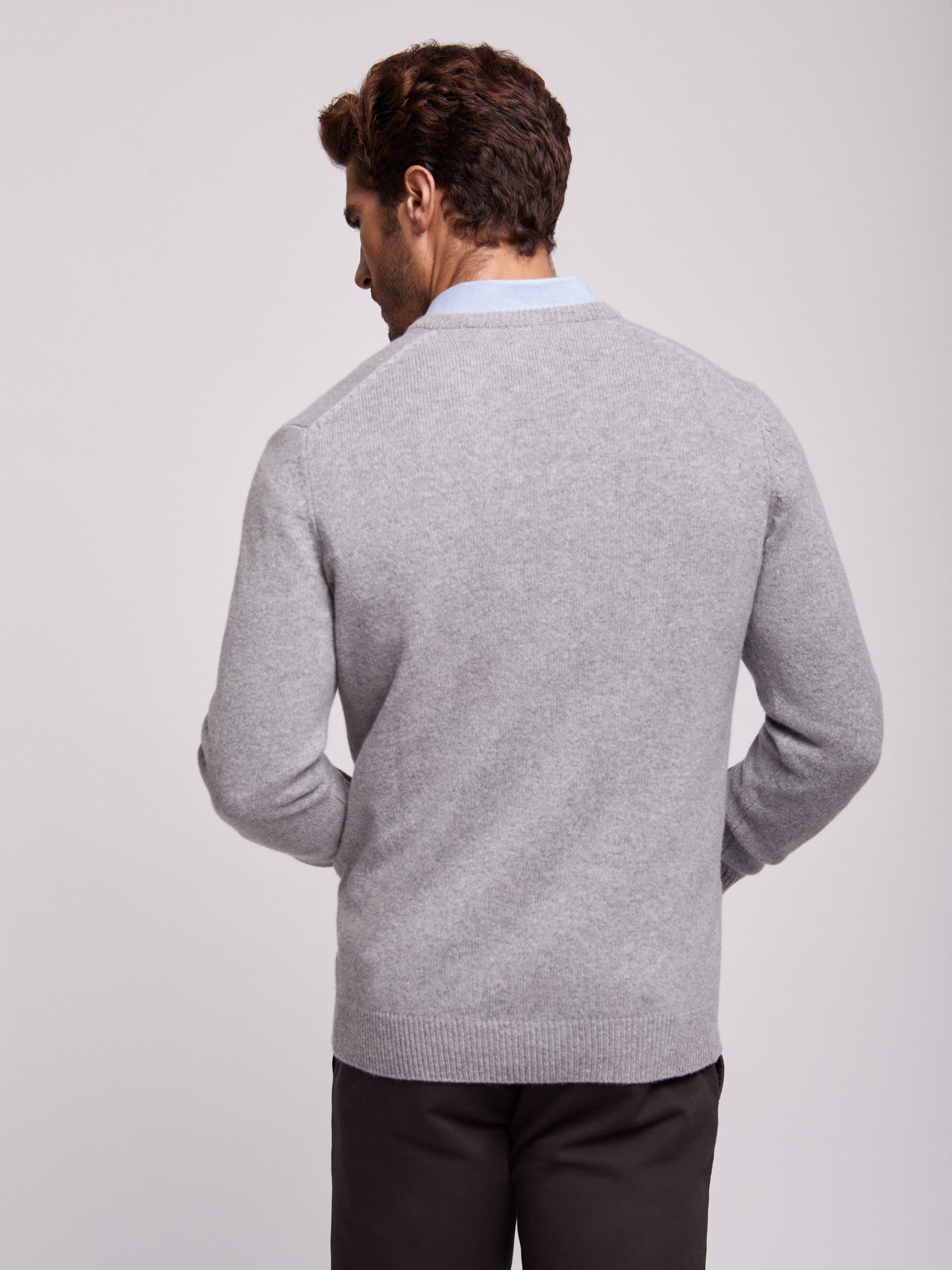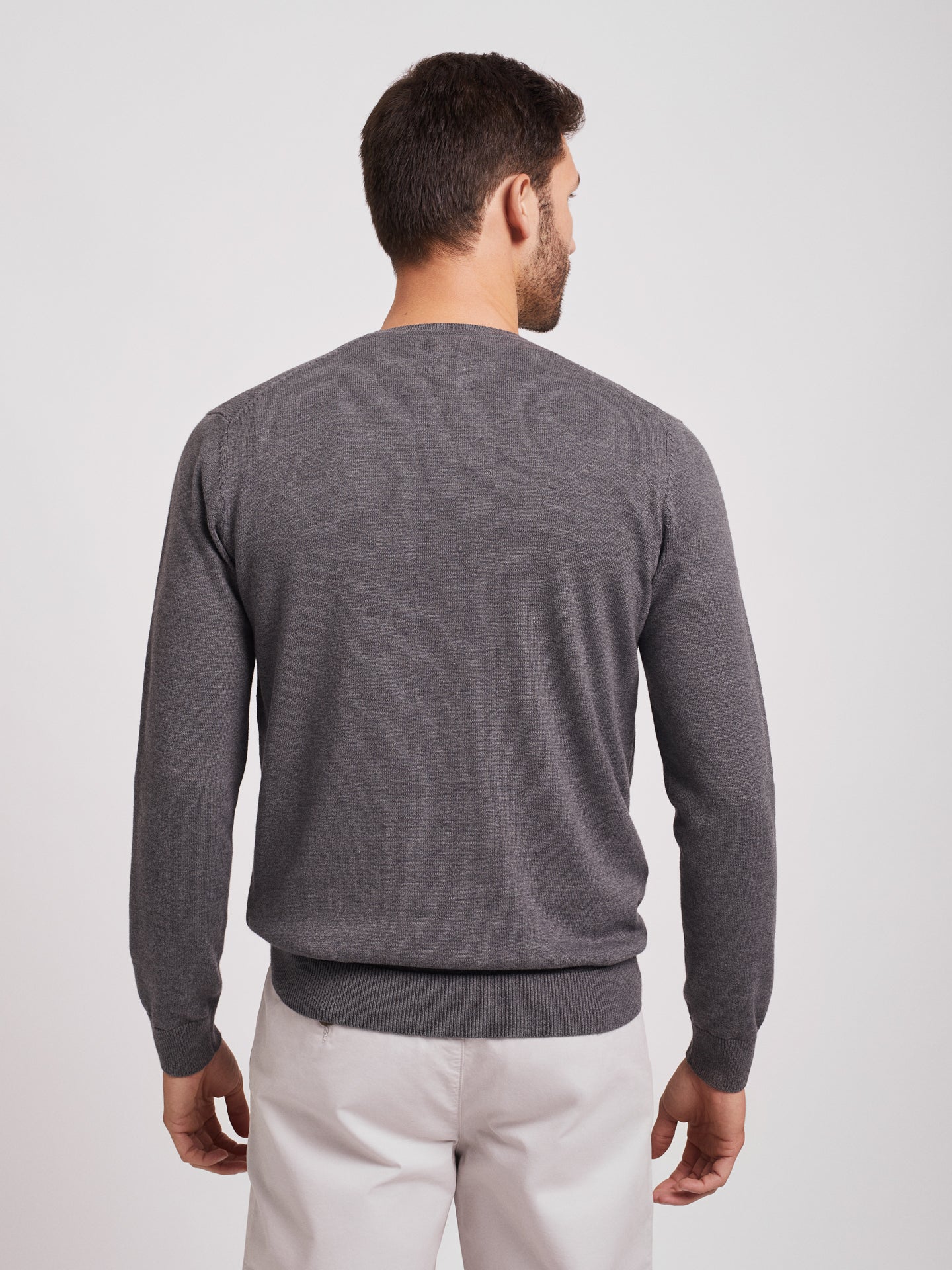 Camisola cinzento em algodão e caxemira decote em V