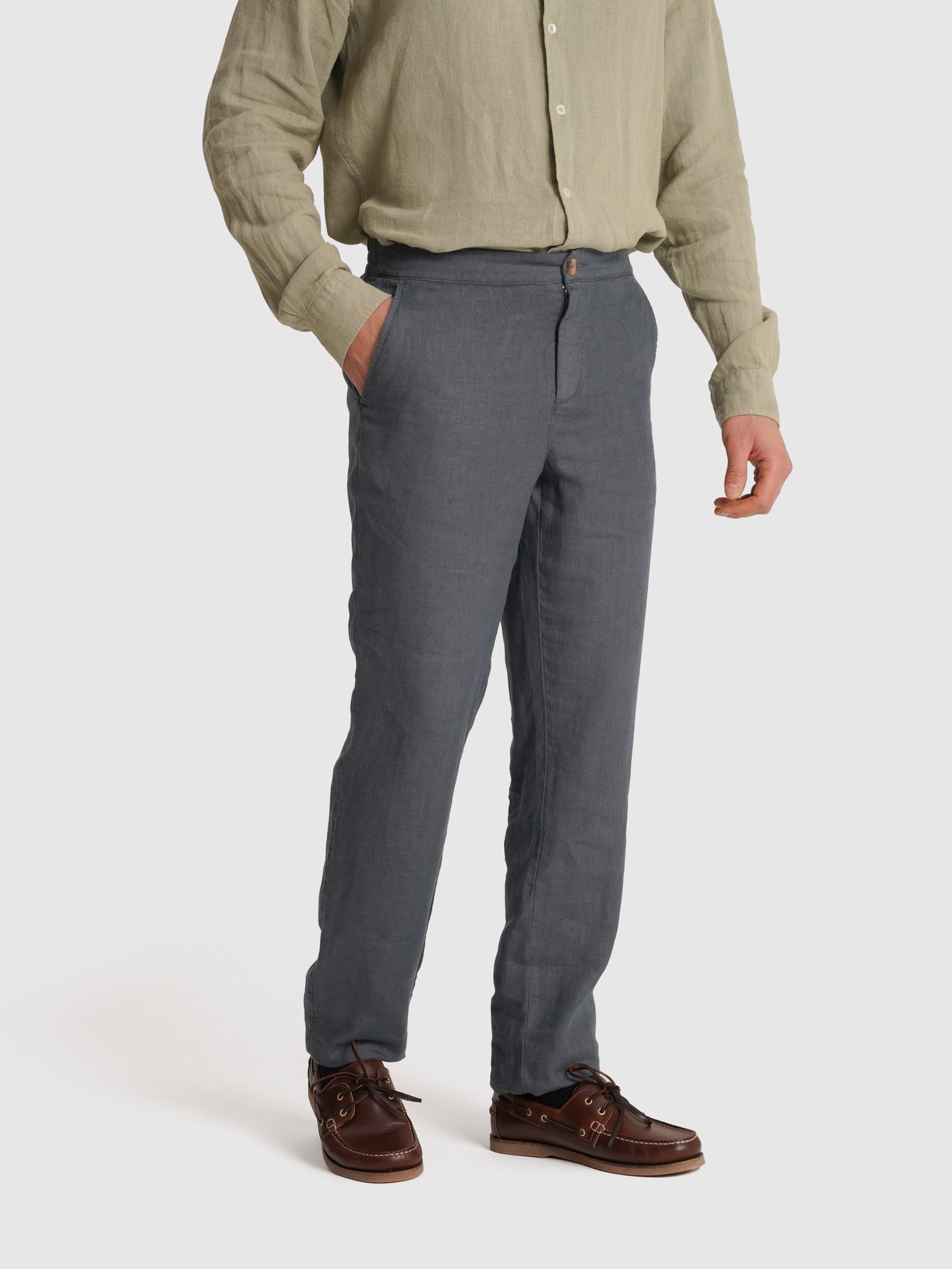 Calças Linho Azuis Regular Fit Lisas