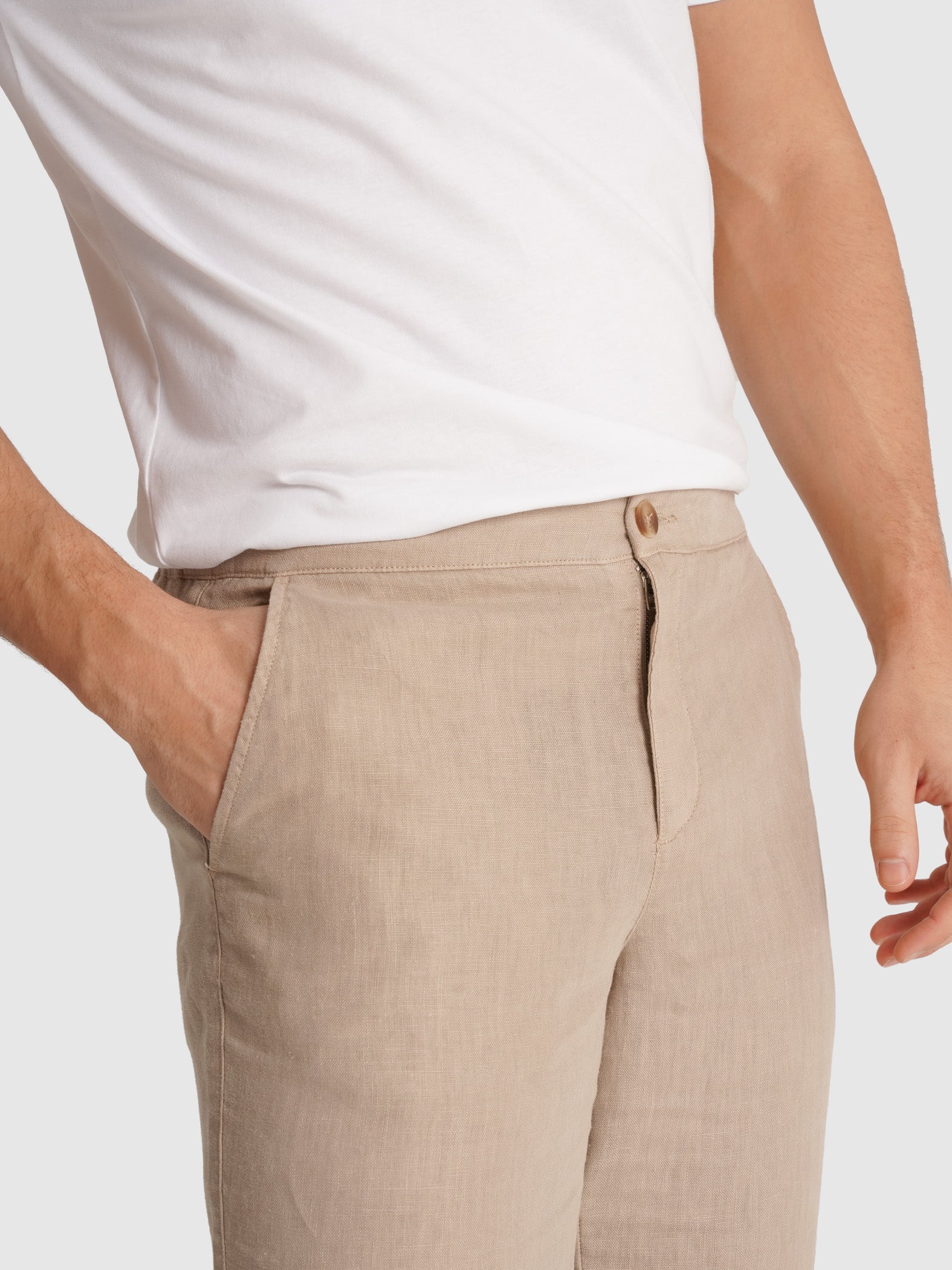 Calças Linho Beges Regular Fit Lisas