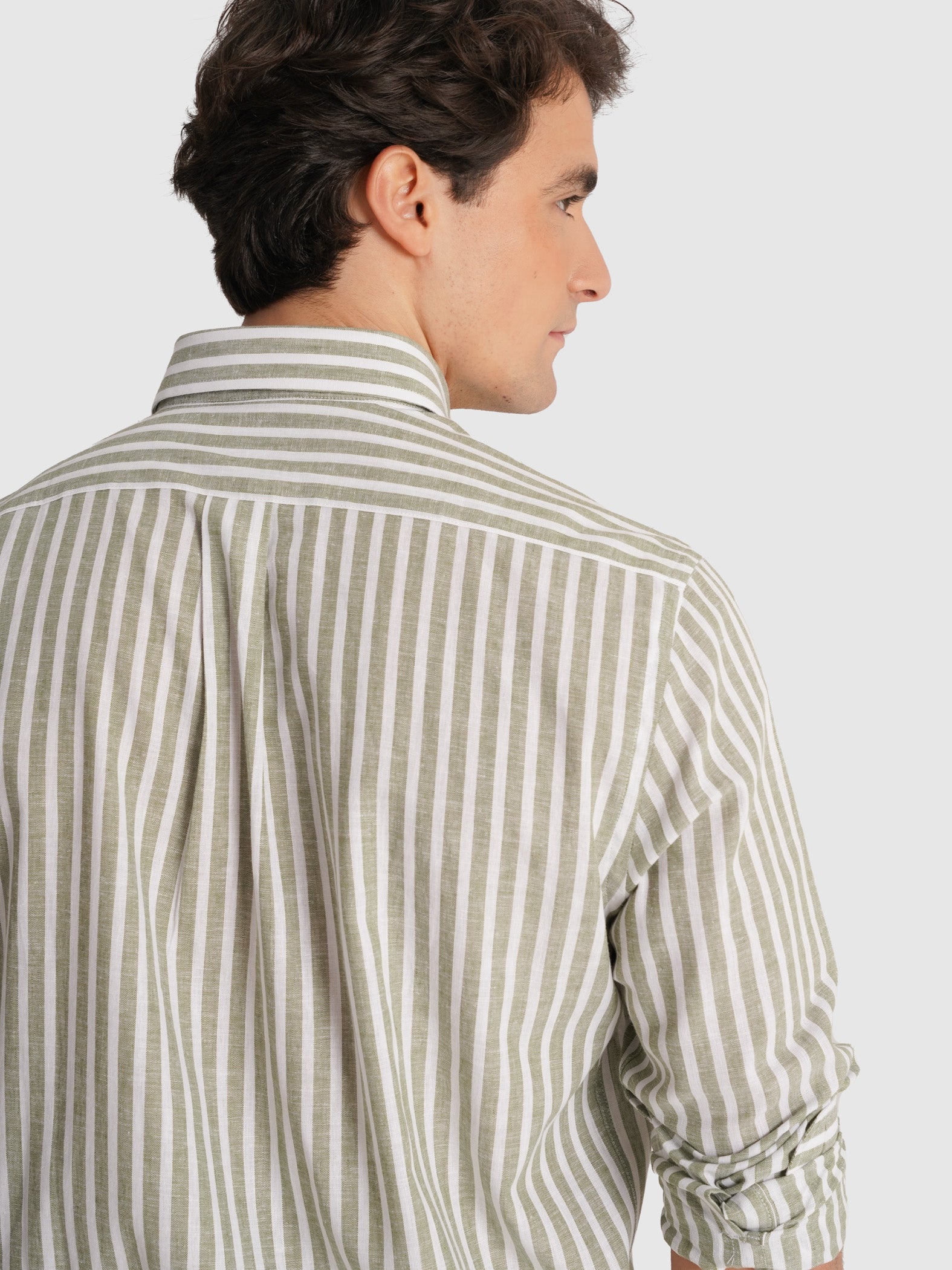 Camisa Linho Verde Manga Comprida Regular Fit Com Logo Riscas