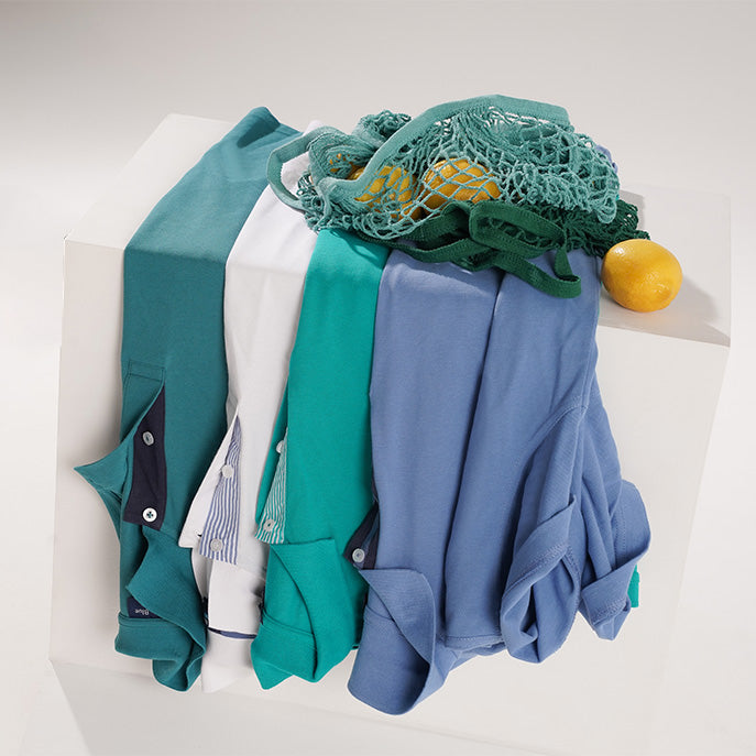 As t-shirts traduzem a luz do Mediterrâneo em peças de vestir. Uma paleta profunda para quem procura a liberdade de uma silhueta solta e o conforto de um verão que não termina.