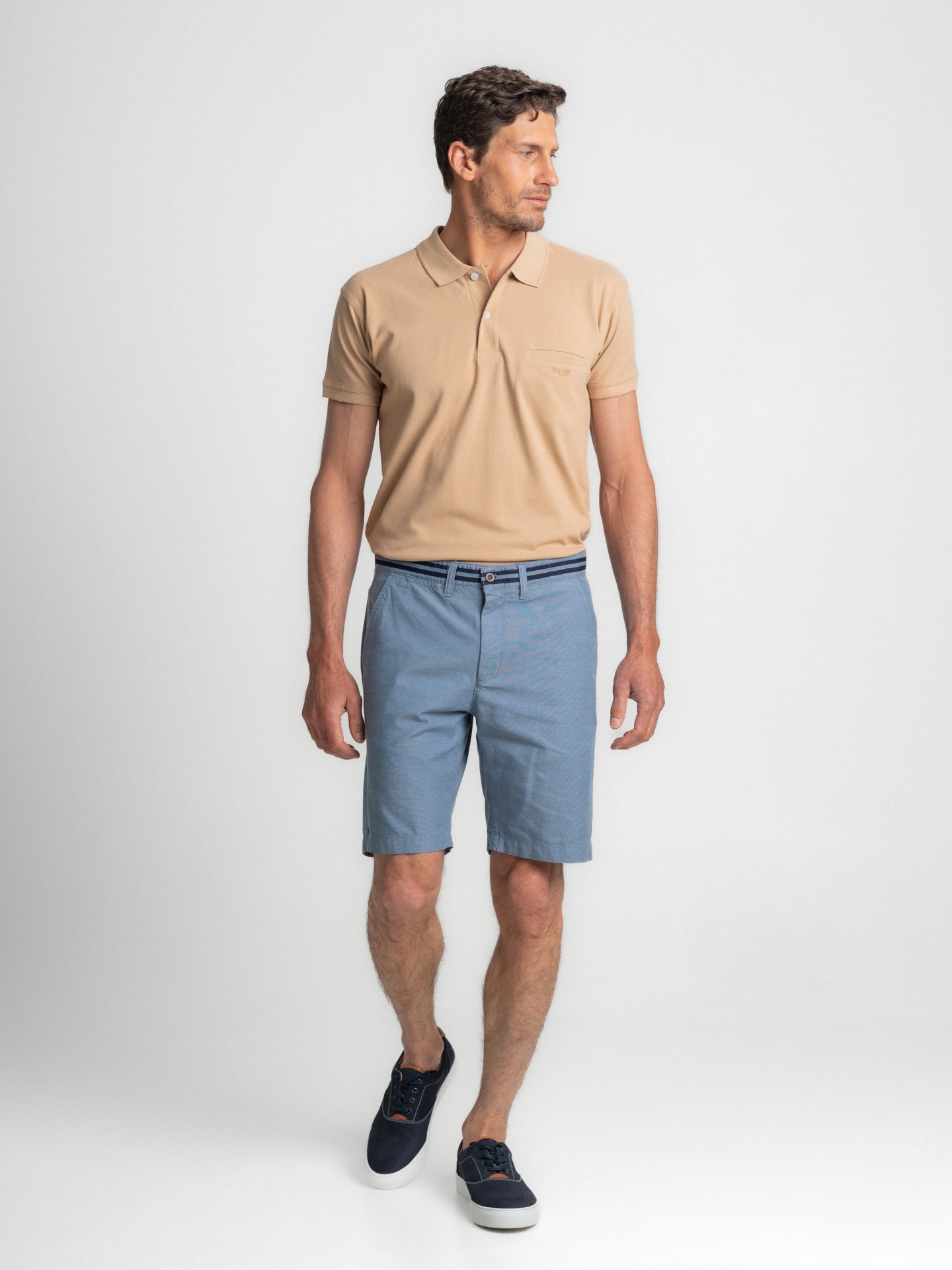 Calções Bermuda Classic Fit Azul Algodão