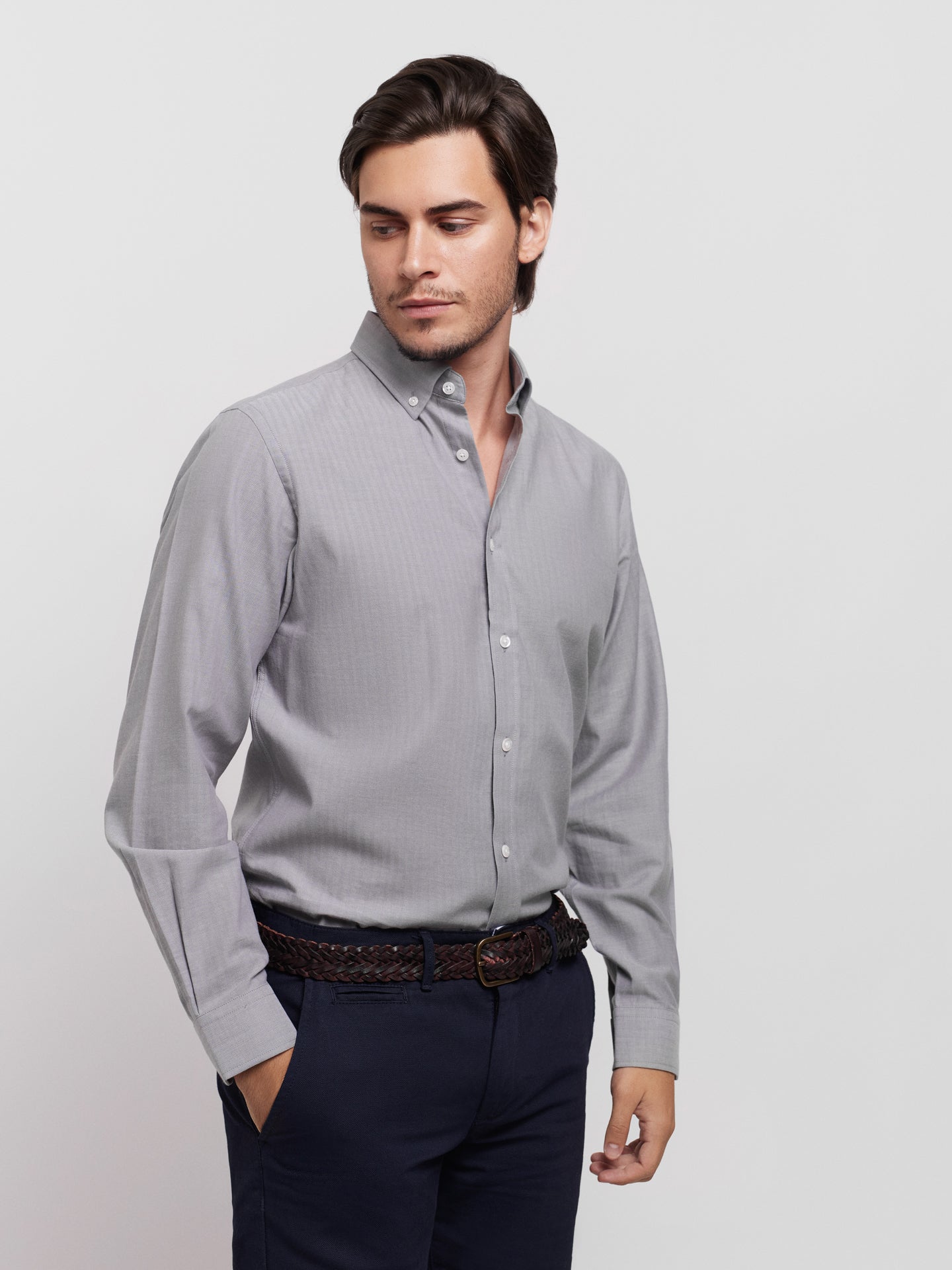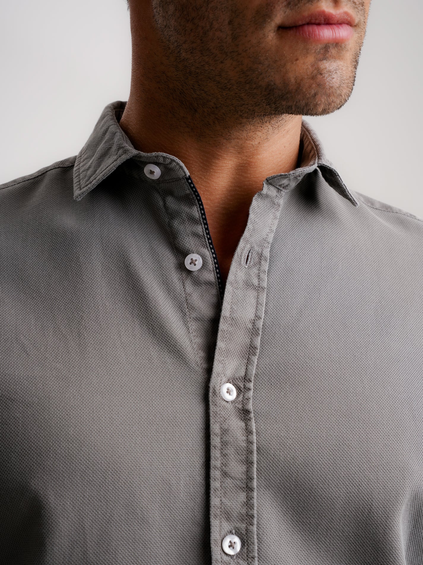 Camisa Tailored Fit Estruturada Cinzenta