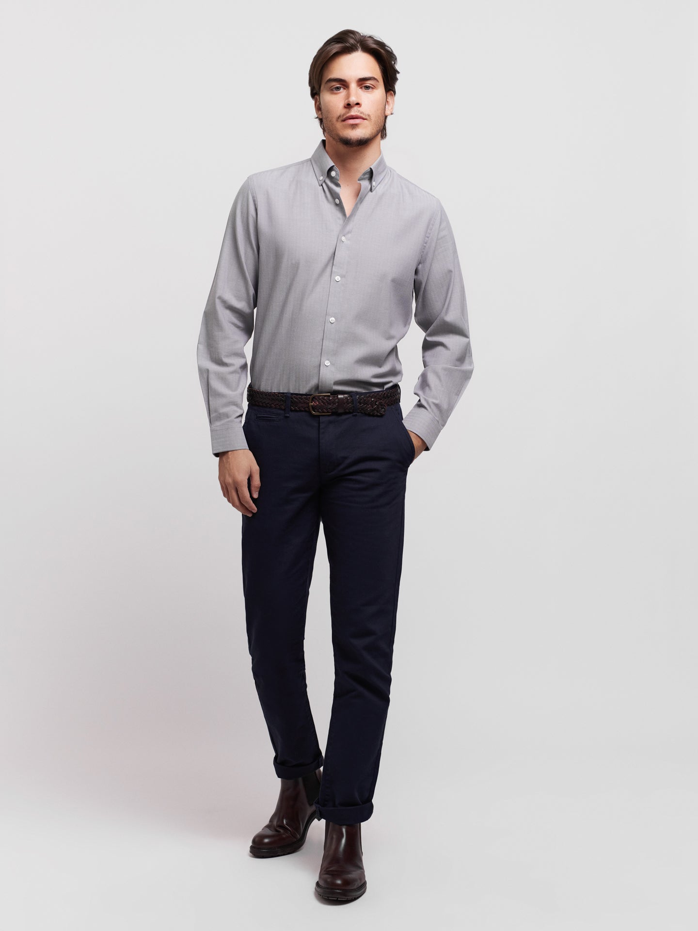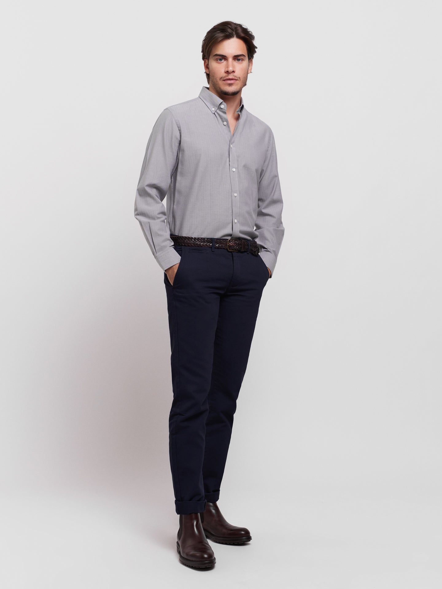 Camisa Tailored Fit Cinzenta Manga Comprida