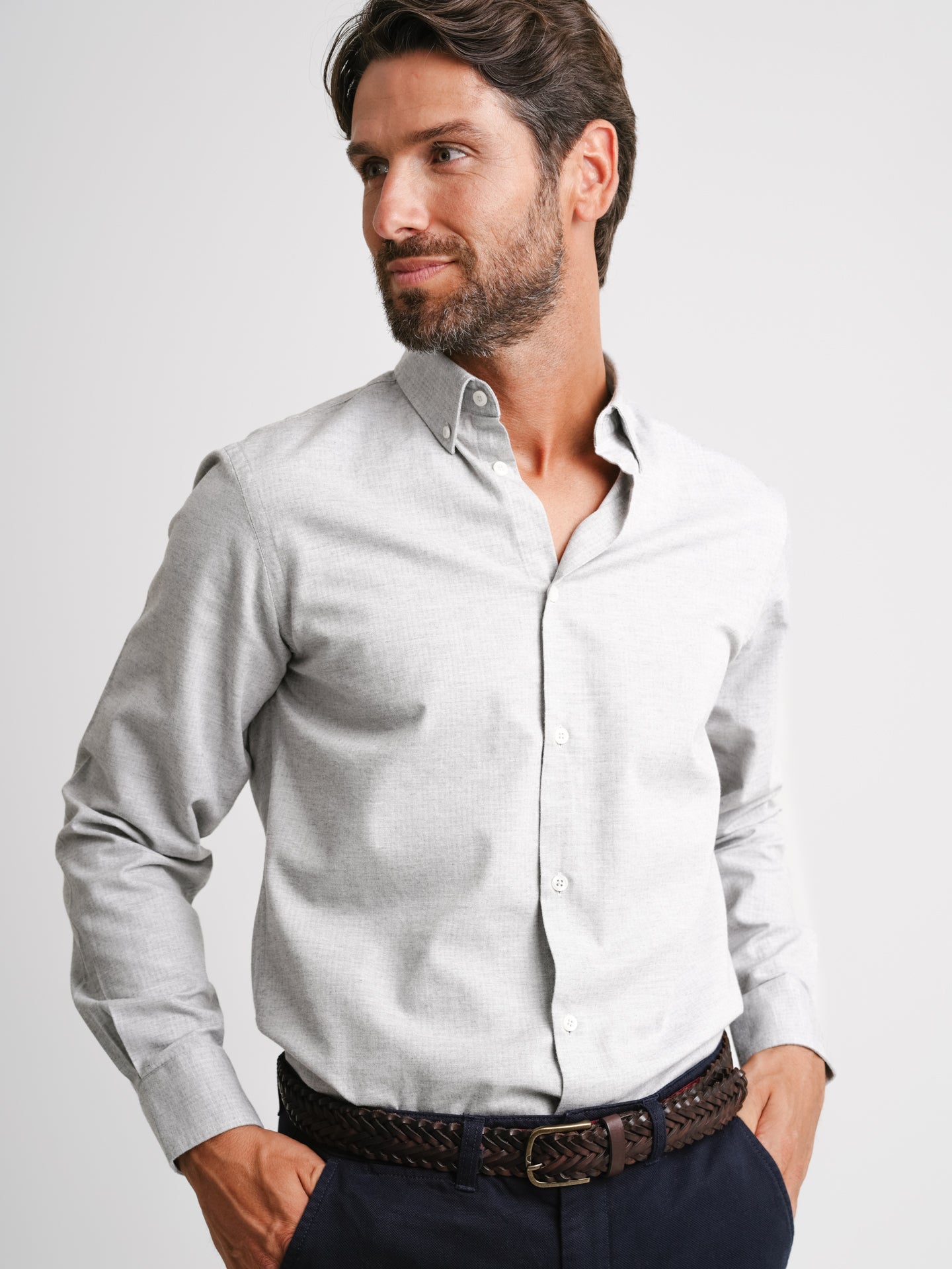 Camisa Tailored fit Flanela Cinzento