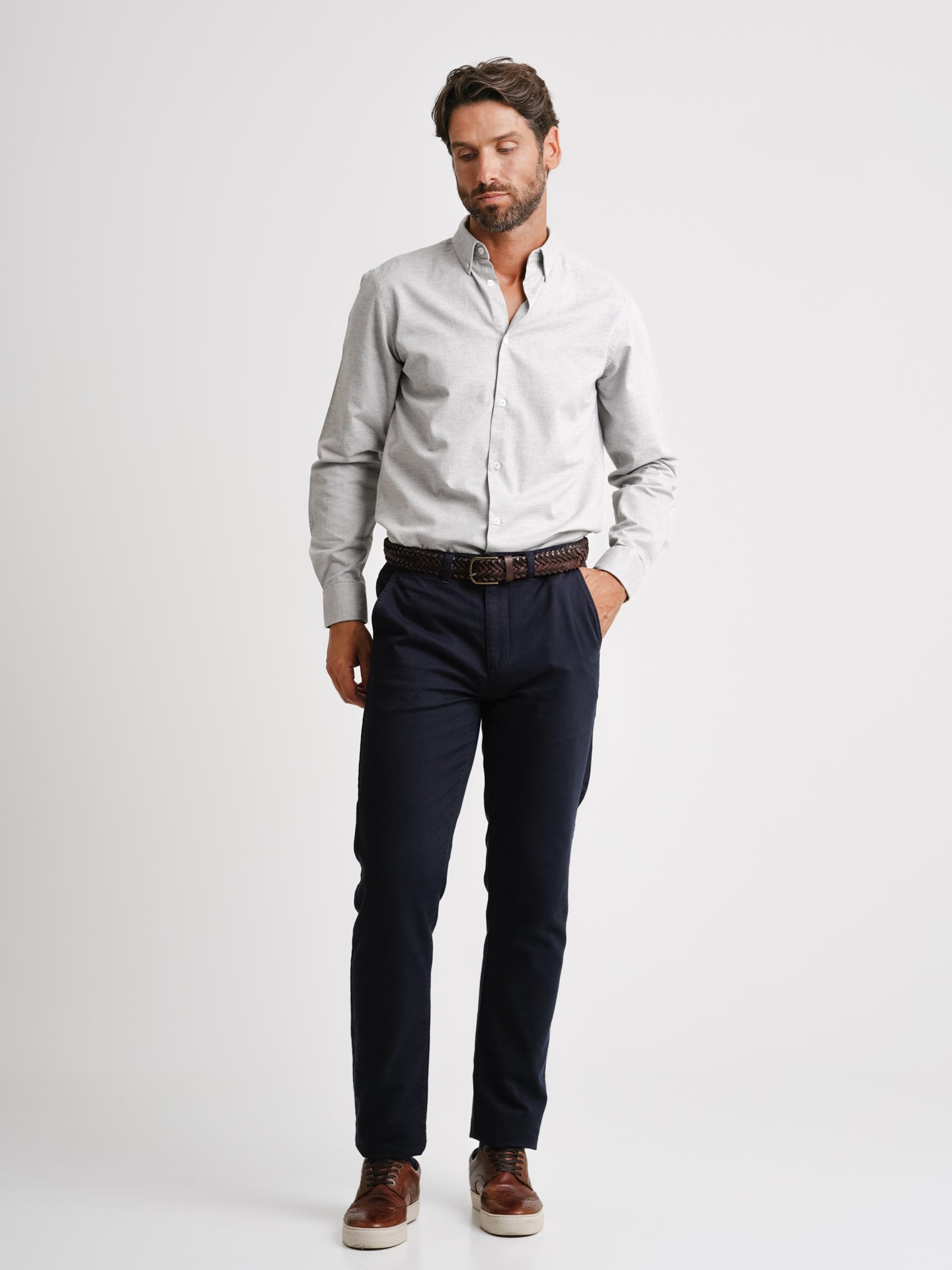 Camisa Slim Fit Oxford Cinzenta