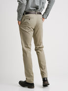 Calças Slim Fit Bege Algodão Liso
