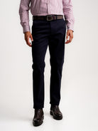 Calças Chinos Slim Fit Twill Azuis De Algodão Lisas