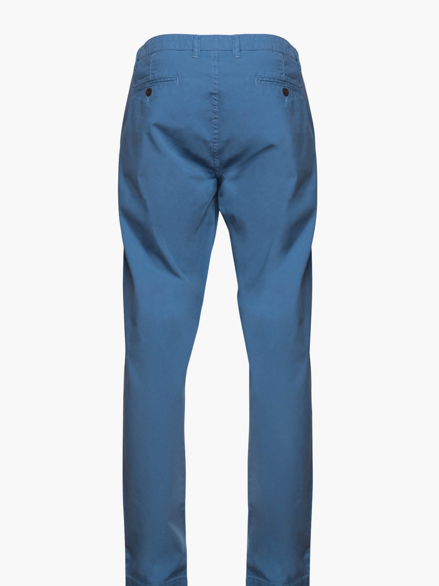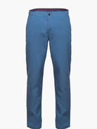 Calças Chinos Homem 100% Algodão Canvas azul claro com detalhe no cós. Corte Tailored Fit. Muito confortáveis, são a escolha certa para os dias mais quentes.