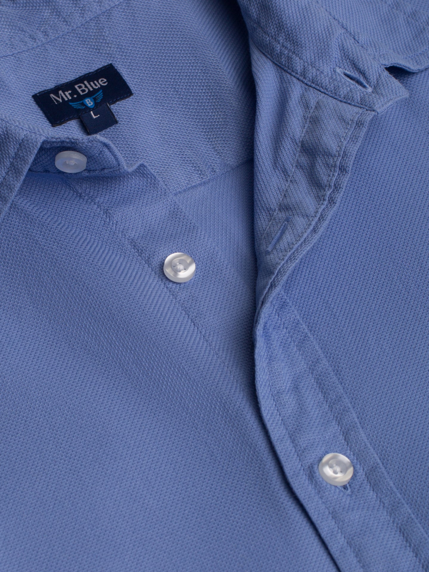 Camisa Slim Fit Piquet Azul