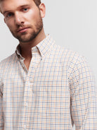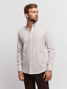 Camisa Regular Fit Bege Manga CompridaManga Comprida Quadrados Com Bolso