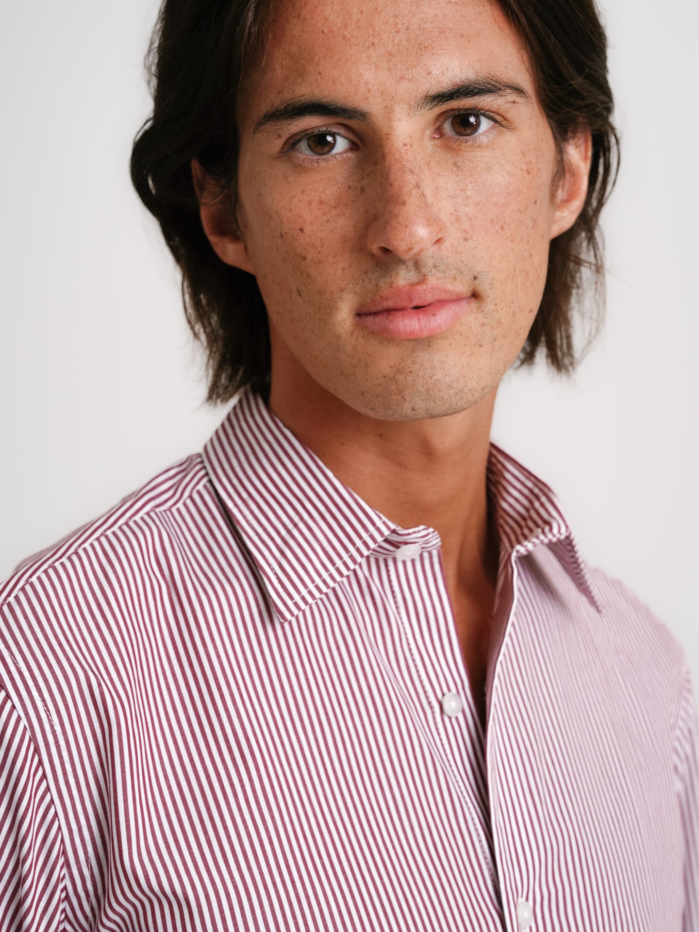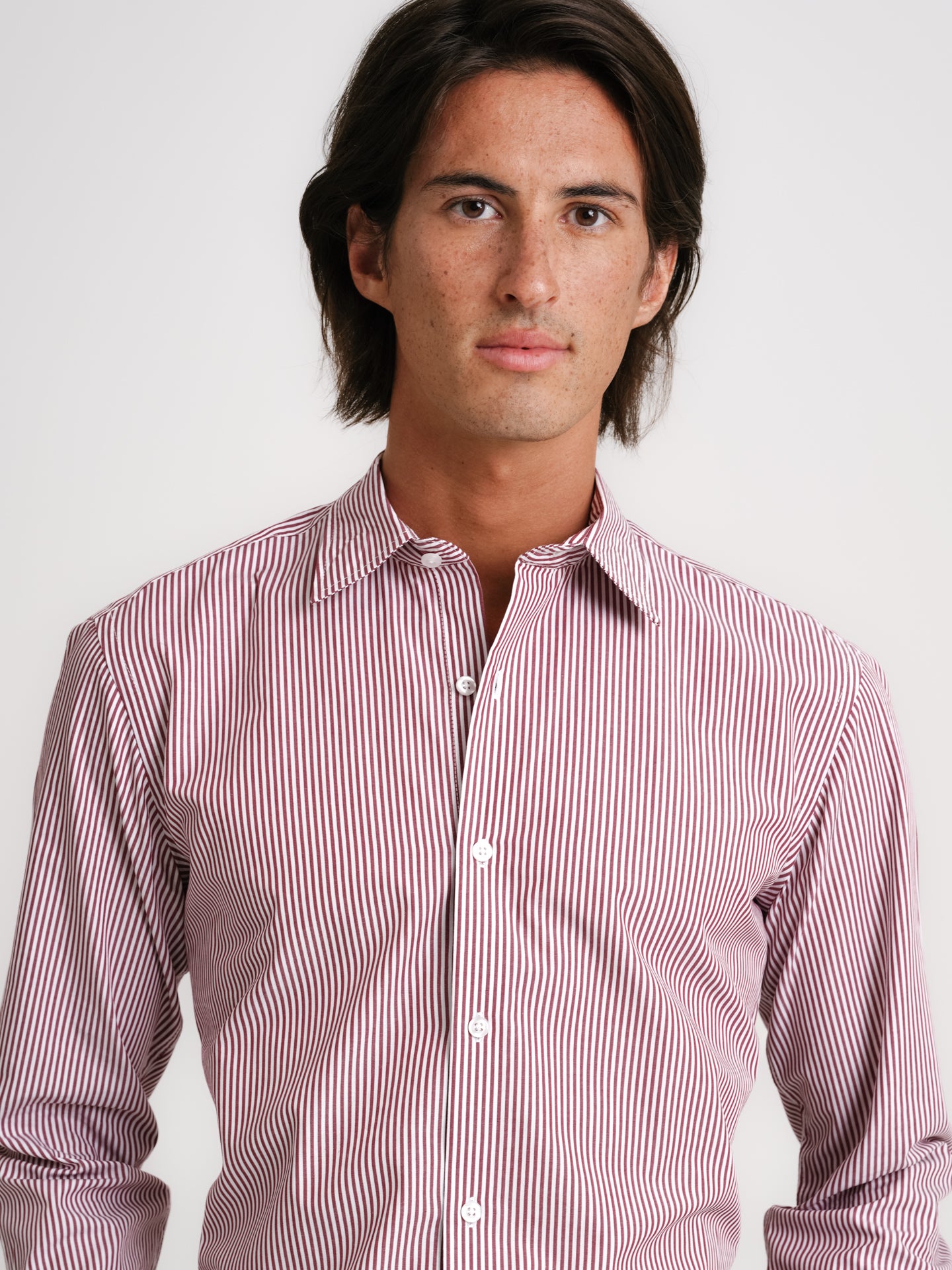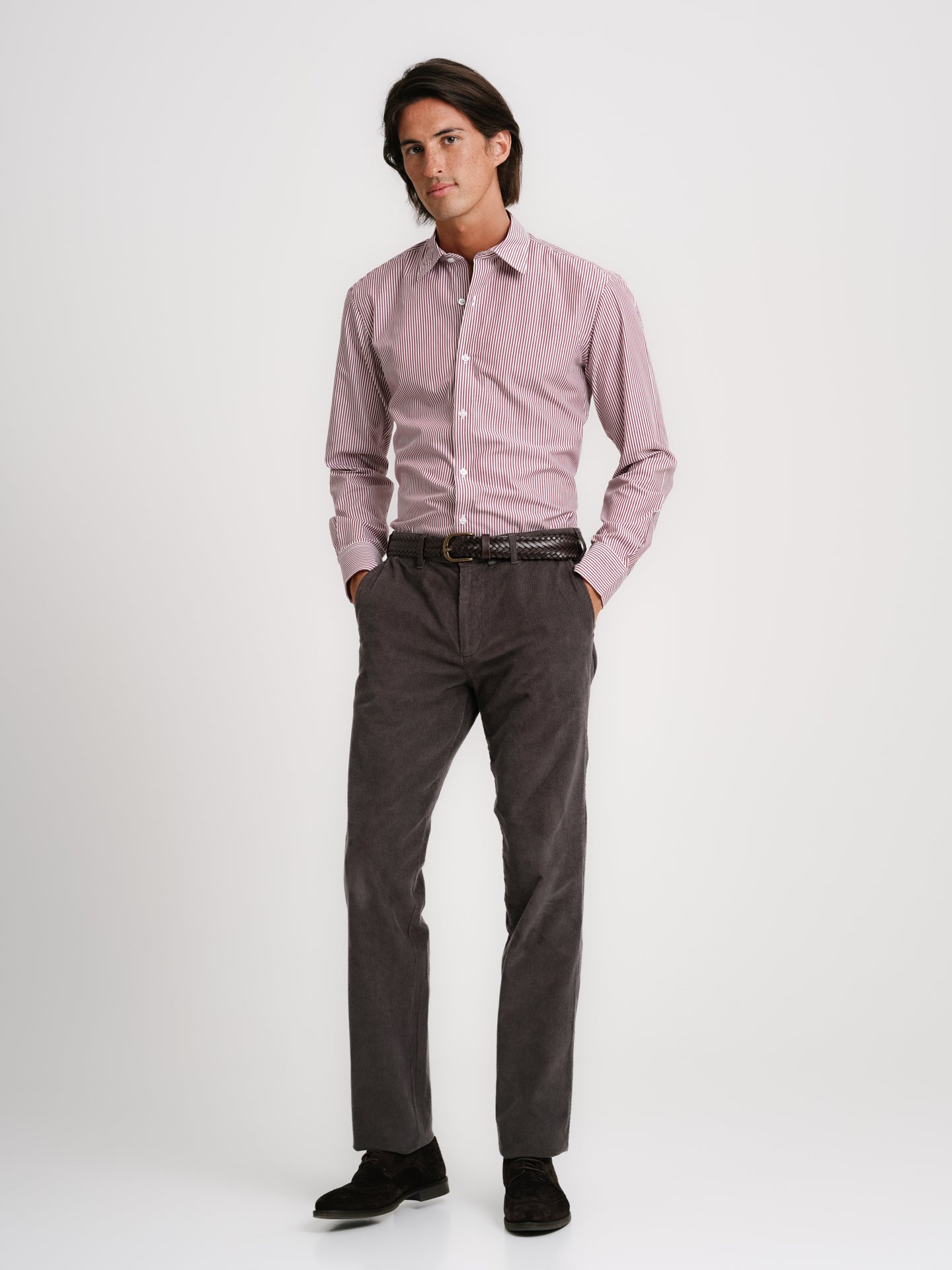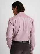 Camisa Classic fit Popeline Vermelha Algodão Riscas