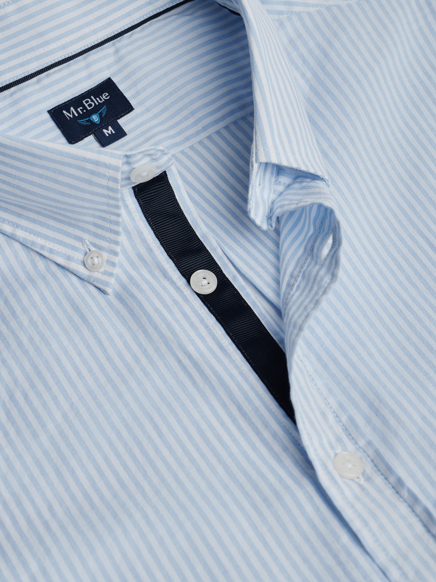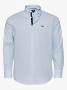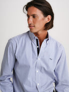 Camisa Regular Fit Oxford Azul Algodão Riscas Com logo