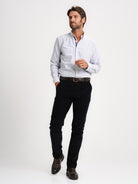 Camisa Regular Fit Oxford Azul Algodão Riscas Com bolso