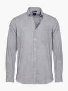 Camisa Regular Fit Flanela Cinzenta Algodão Liso