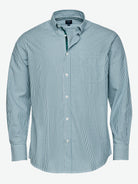 Camisa Regular Fit Popeline Verde Algodão Riscas Com bolso