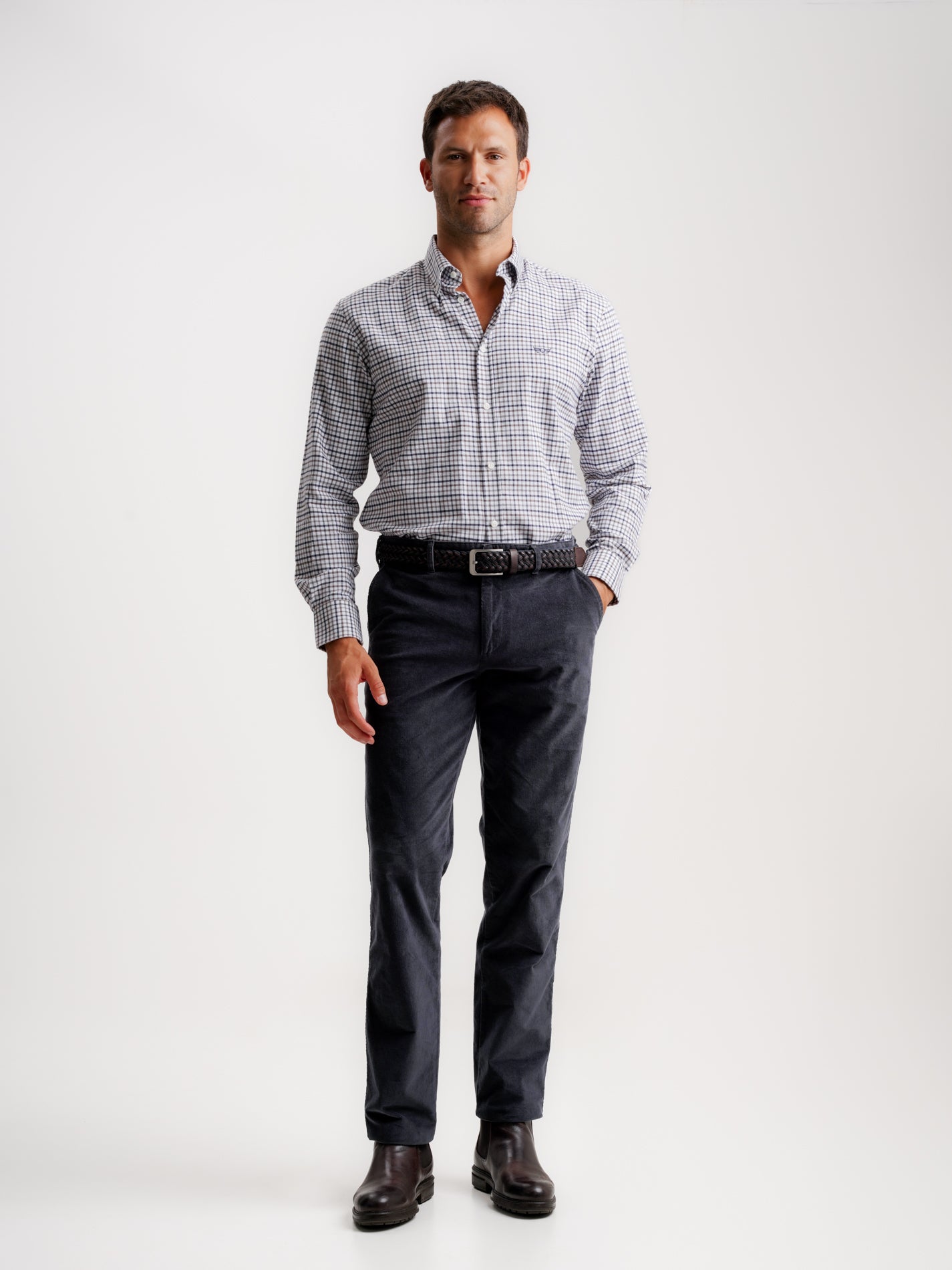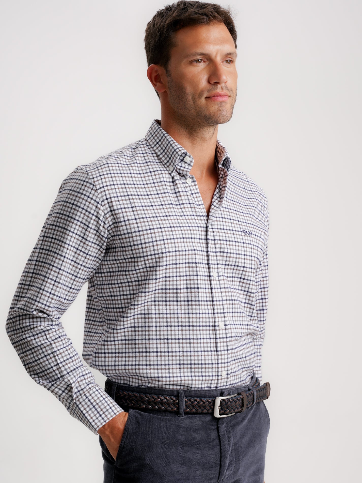 Camisa Regular Fit Vaiela Azul Manga Comprida Com Logo Com Quadrados