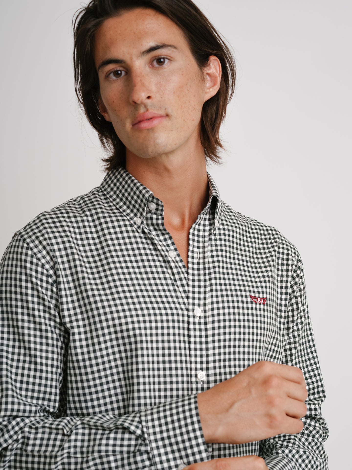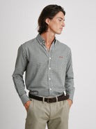 Camisa Regular Fit Twill Verde Algodão Quadrados Com logo