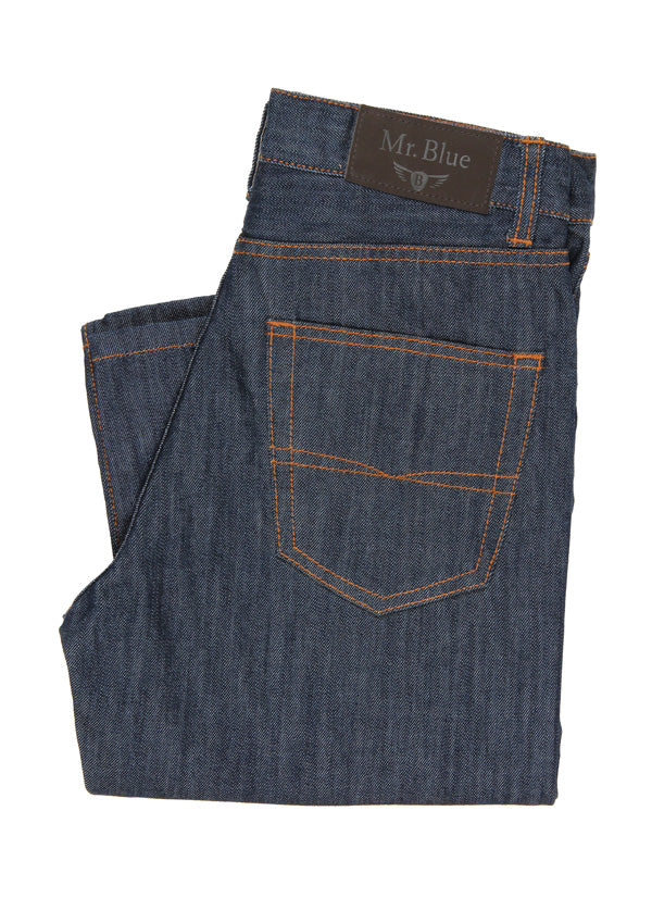 Calças de ganga stone wash azul escuro cintura subida