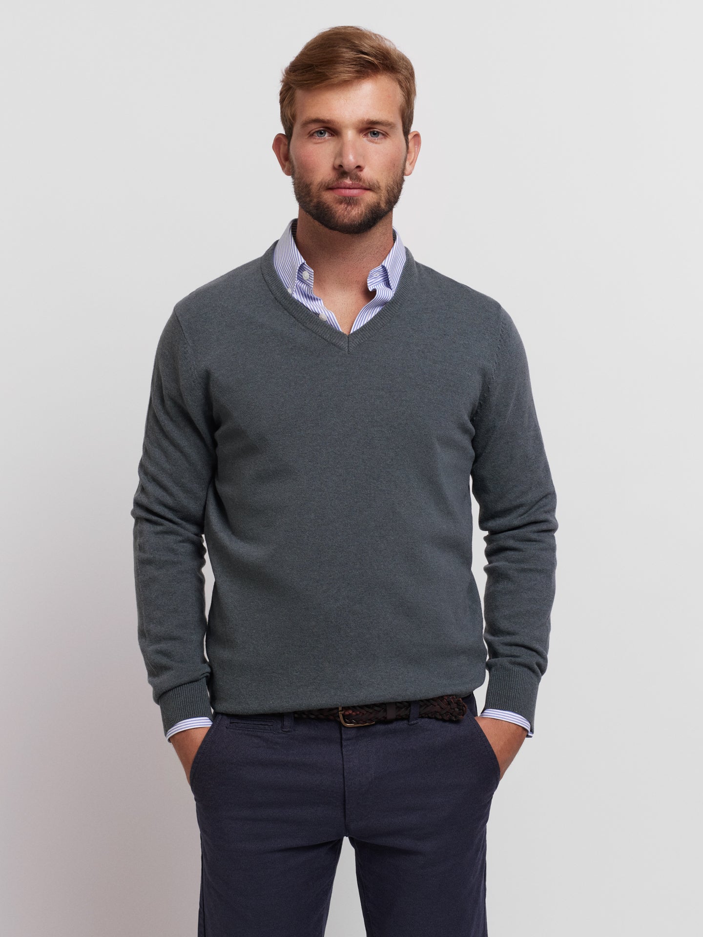 Pullover Caxemira Fino Cinzento
