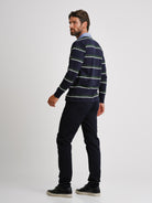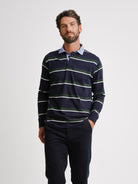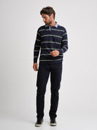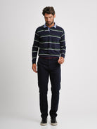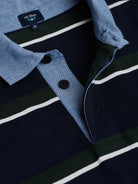 Rugbie Regular Fit Azul Algodão Riscas Com logo