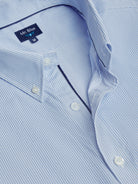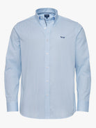 Camisa Regular Fit Popeline Azul Algodão Riscas Com logo