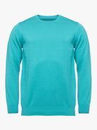 Camisola para homem azul verde. Confecionada em tecido 100% algodão. Corte reto, gola redonda, manga comprida e acabamentos canelados